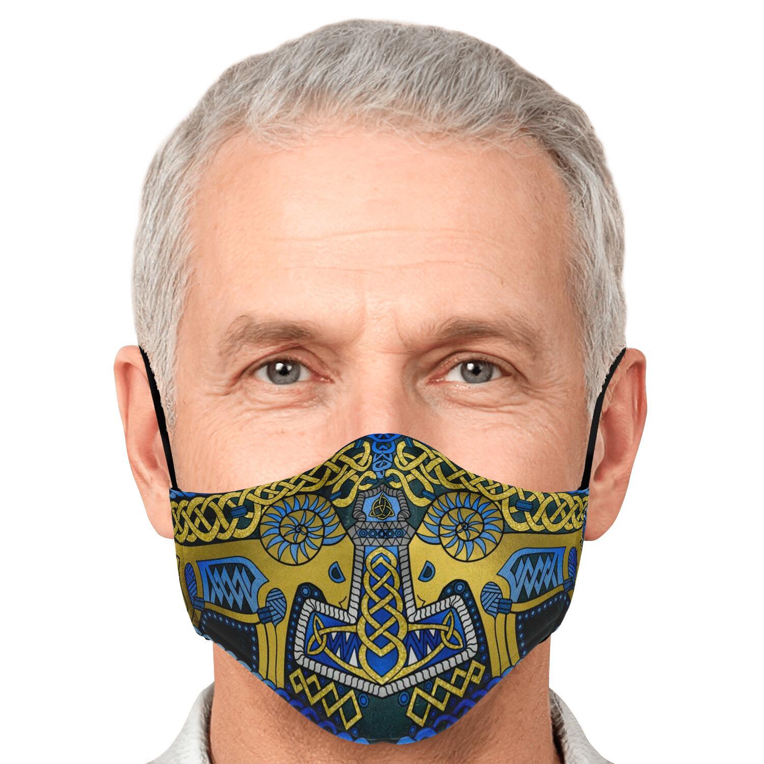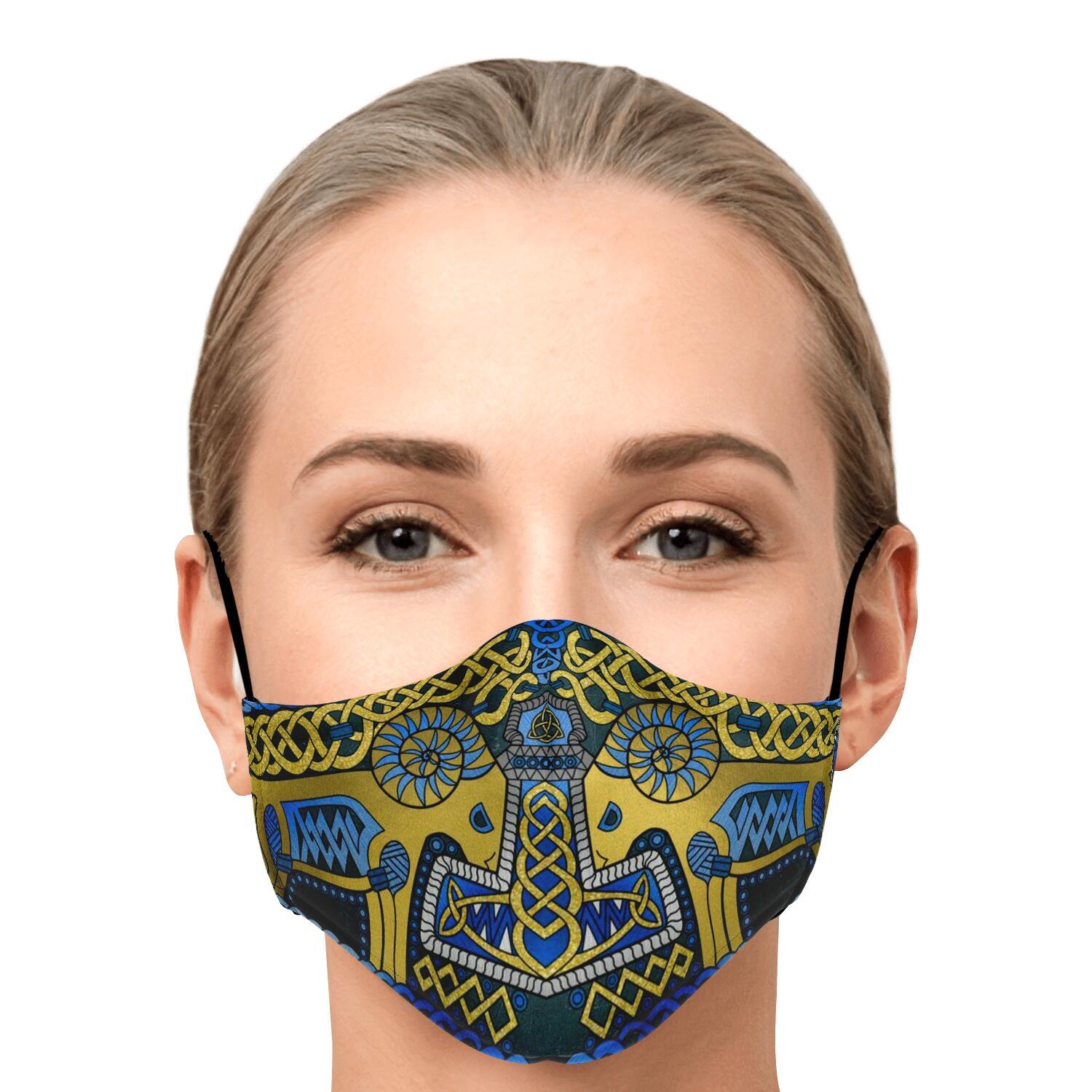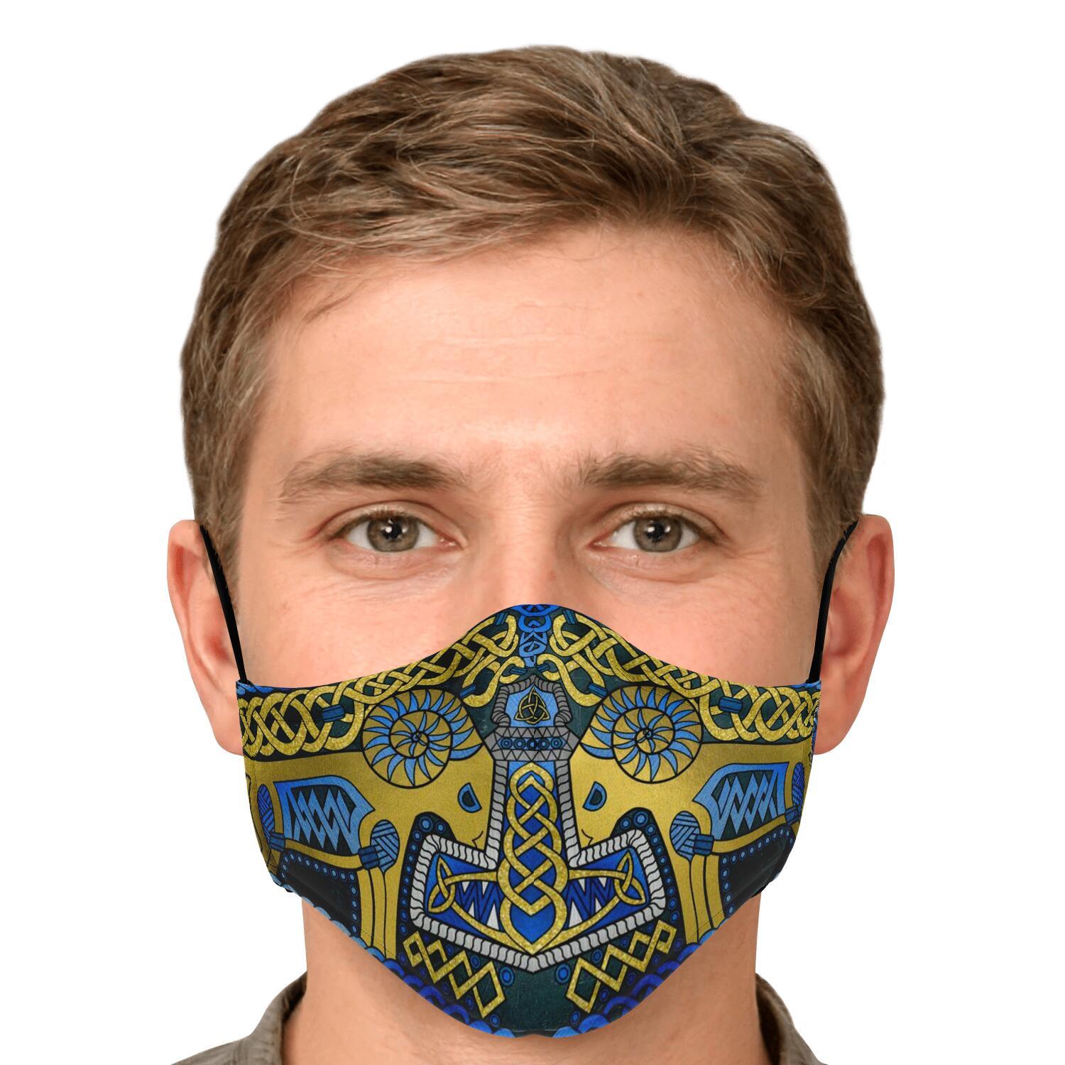 Tanngrisnir and Tanngnjóstr with Mjolnir Blue Viking Face Mask Cover