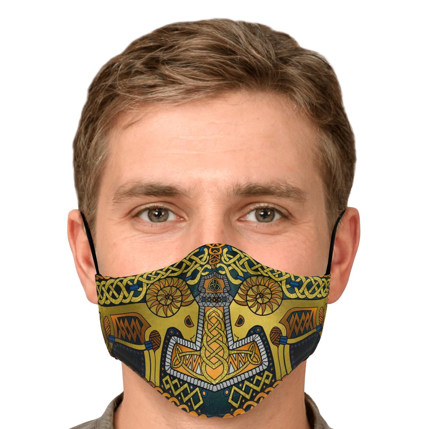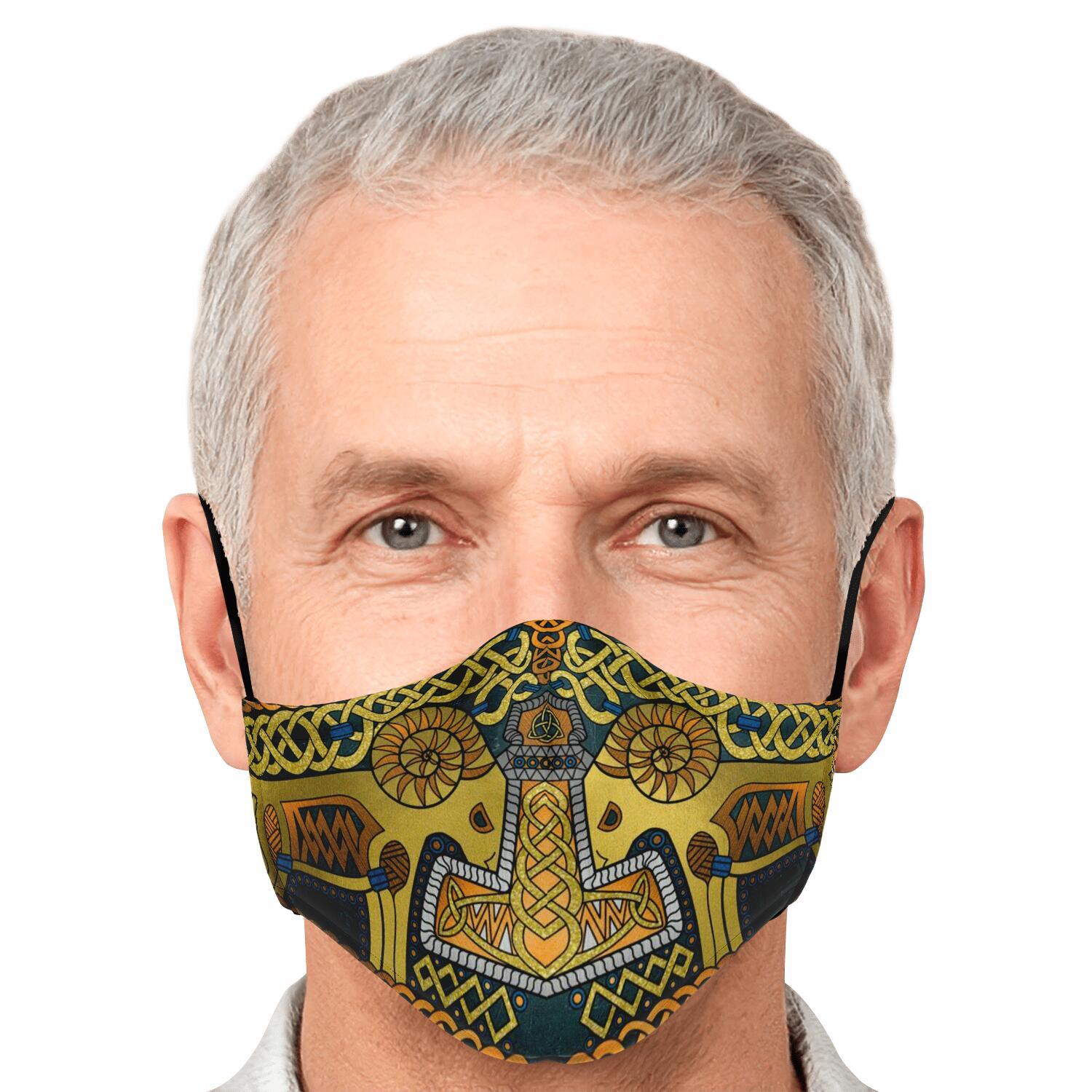 Tanngrisnir and Tanngnjóstr with Mjolnir Gold Viking Face Mask Cover