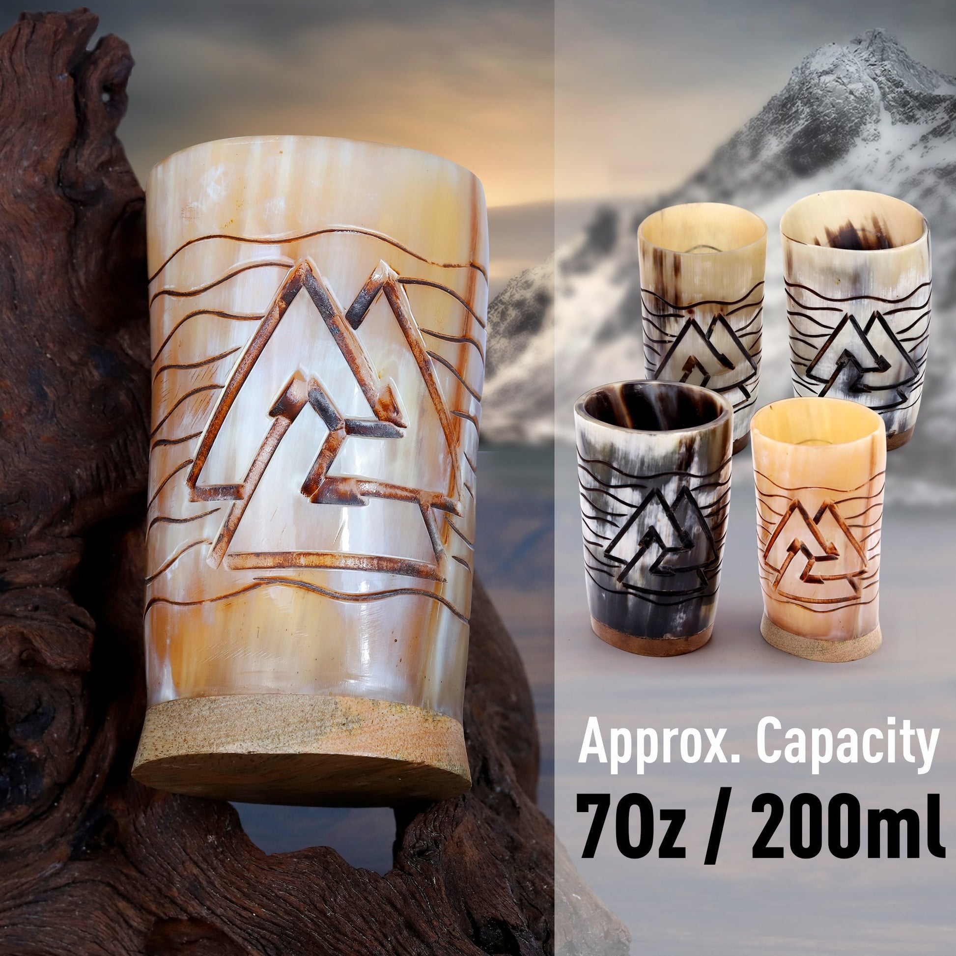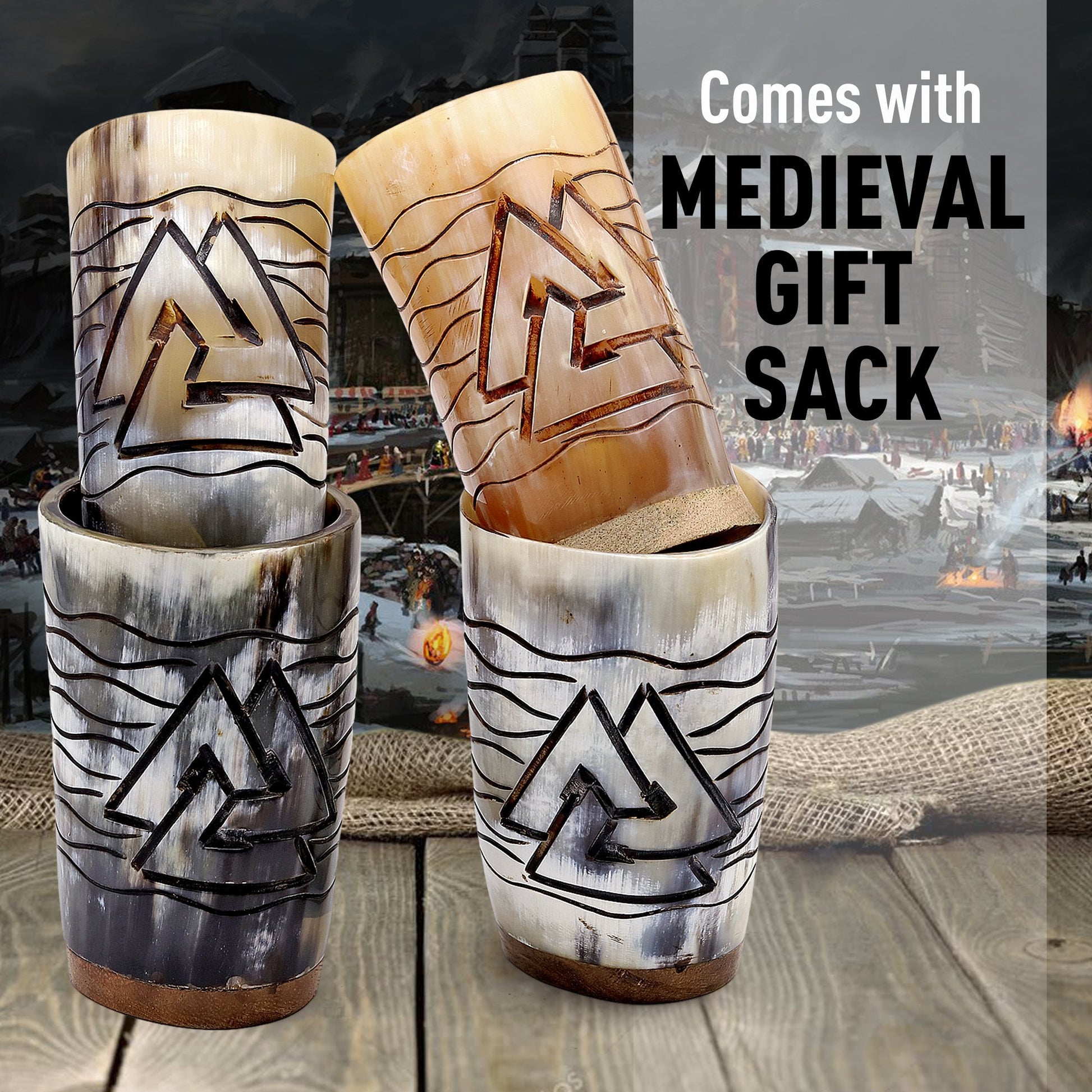 USA SHIPPING ONLY - VikingsBrand 7 oz. Viking Ox Horn Shoot Glasses Set of 4