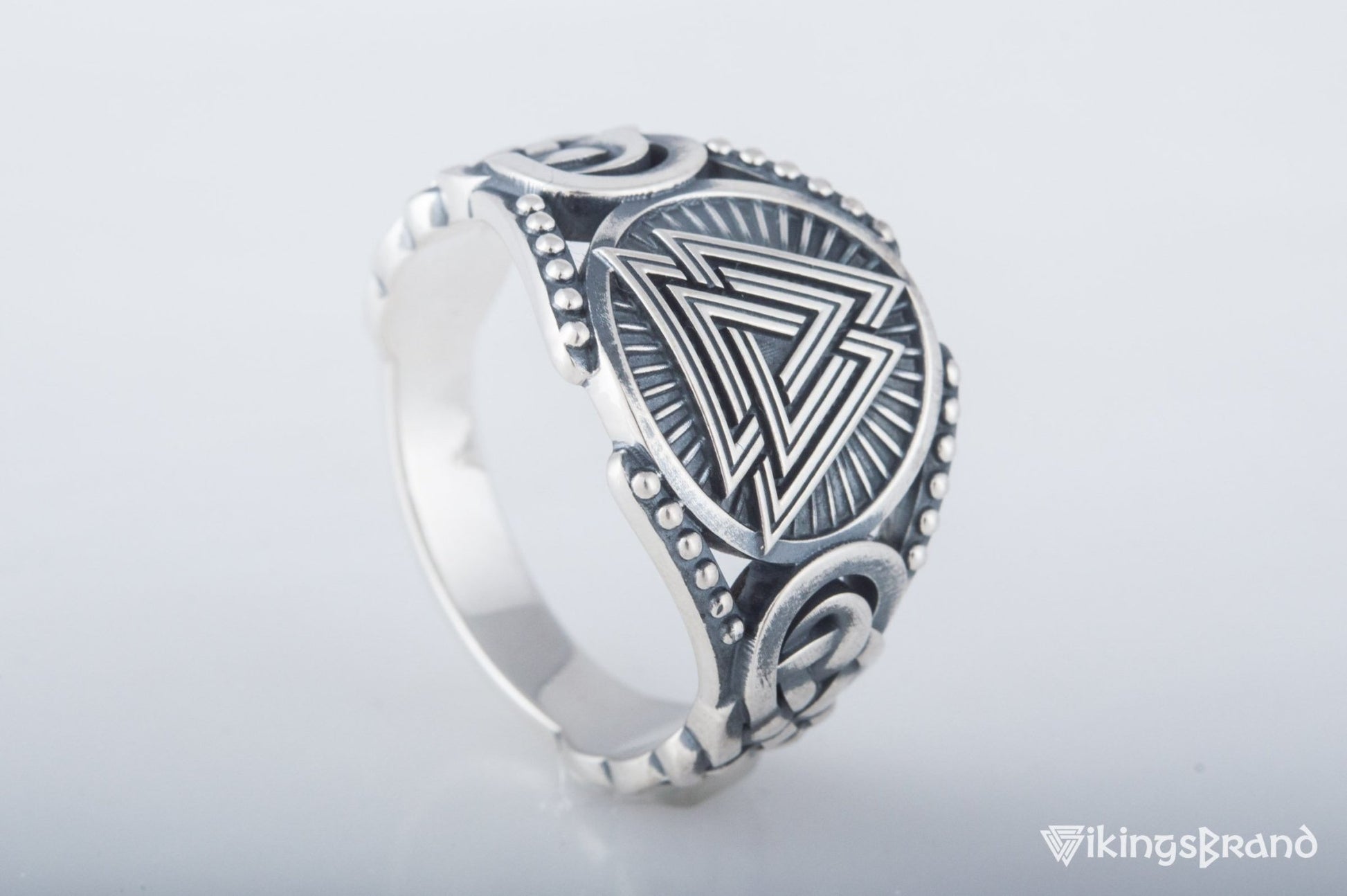 Valknut Viking Symbol with Viking Ornament Sterling Silver Handmade Jewelry