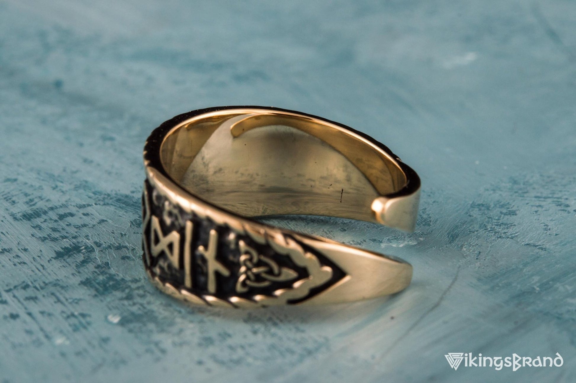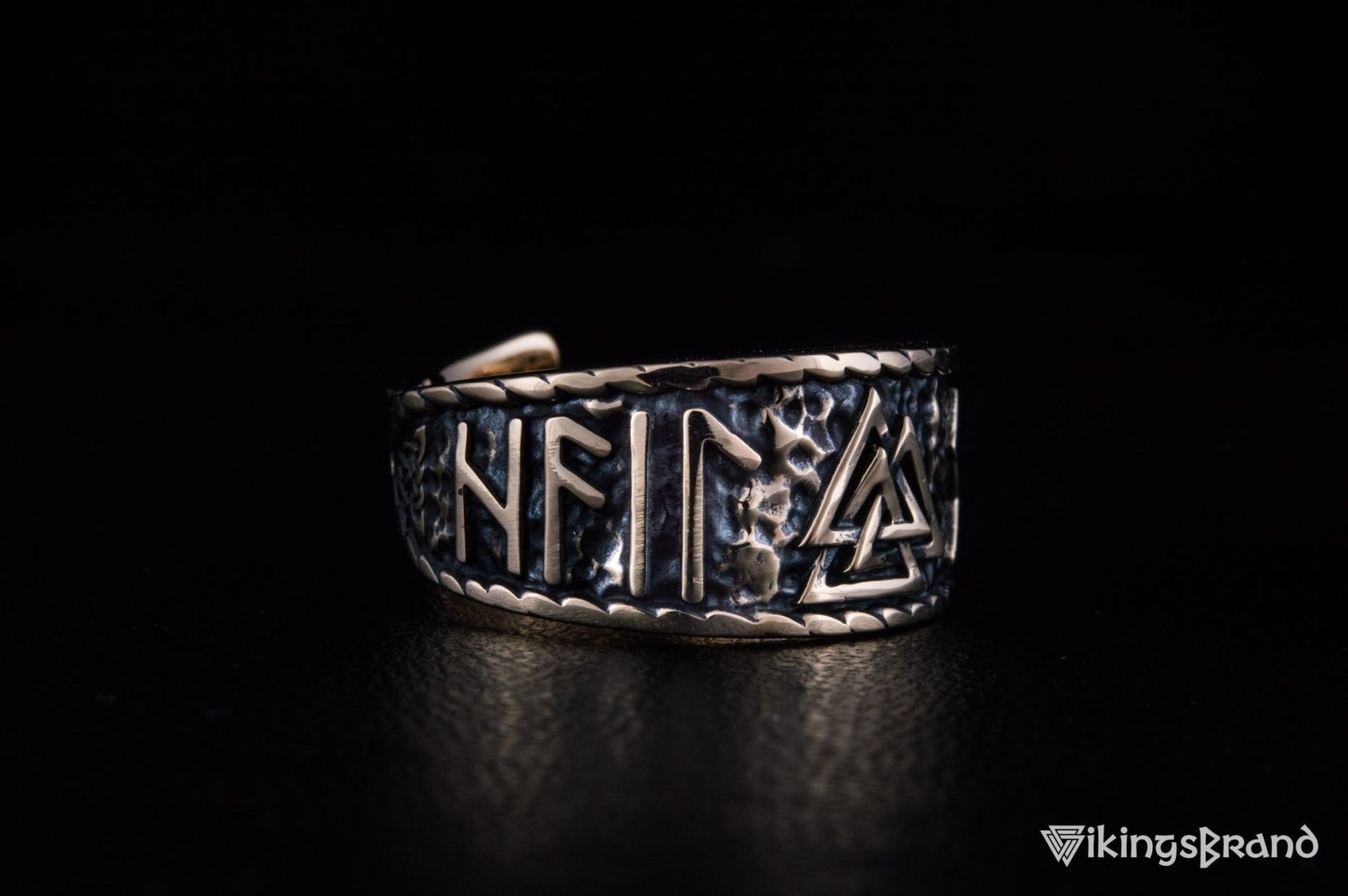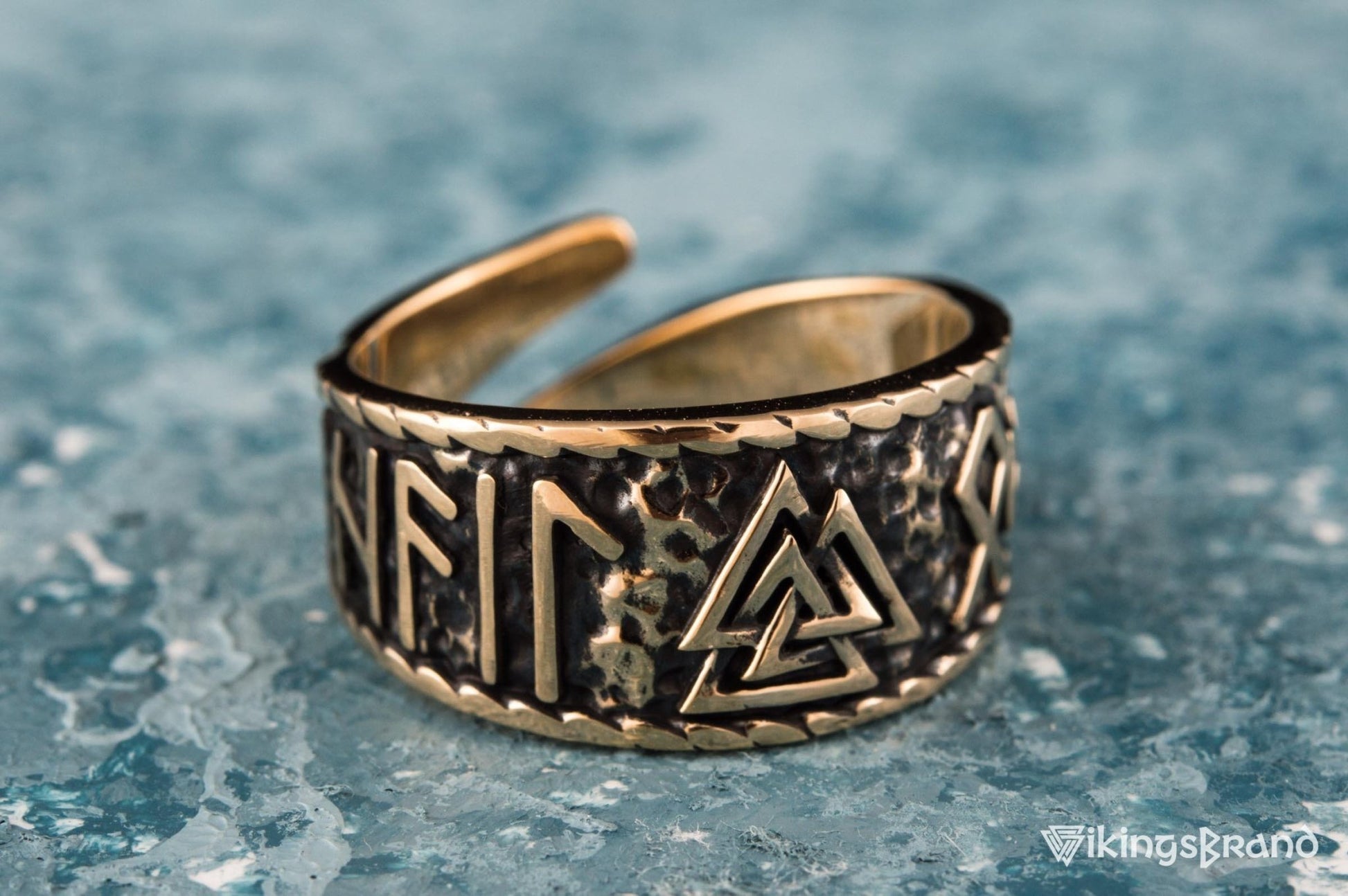 Valknut Viking Symbol With HAIL ODIN Runes Bronze Pagan Ring