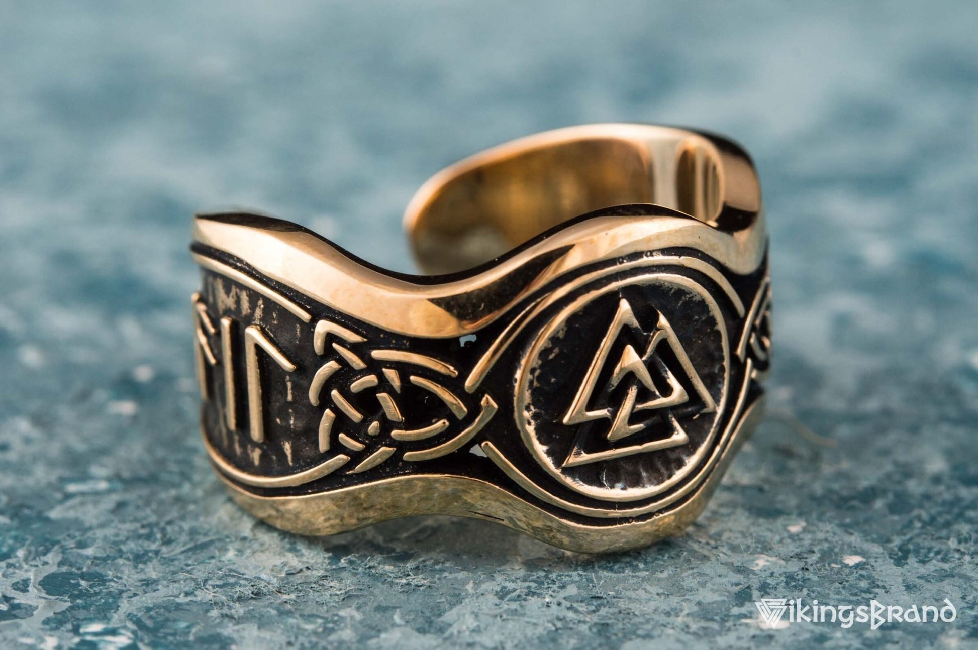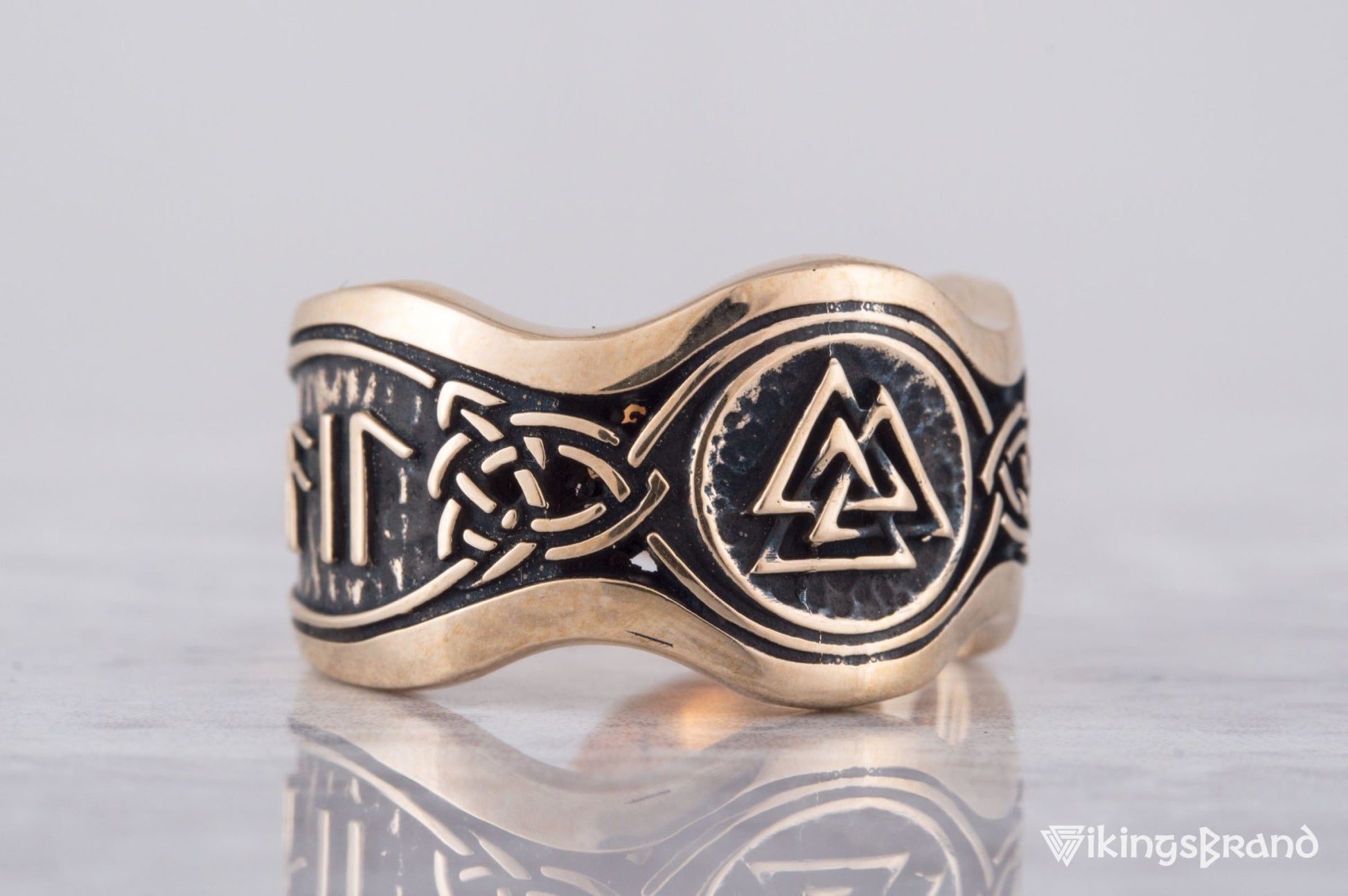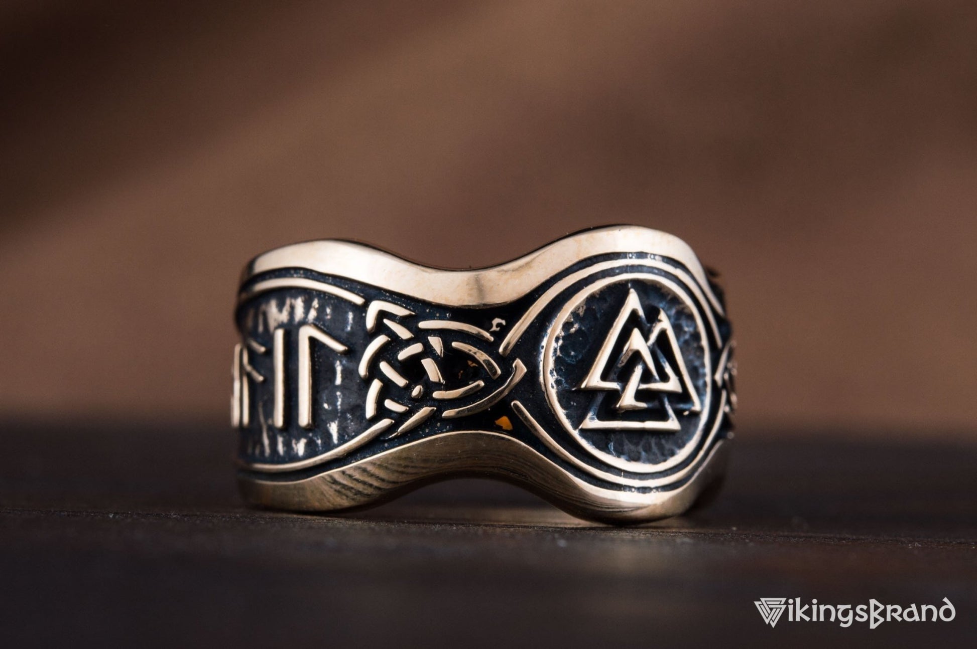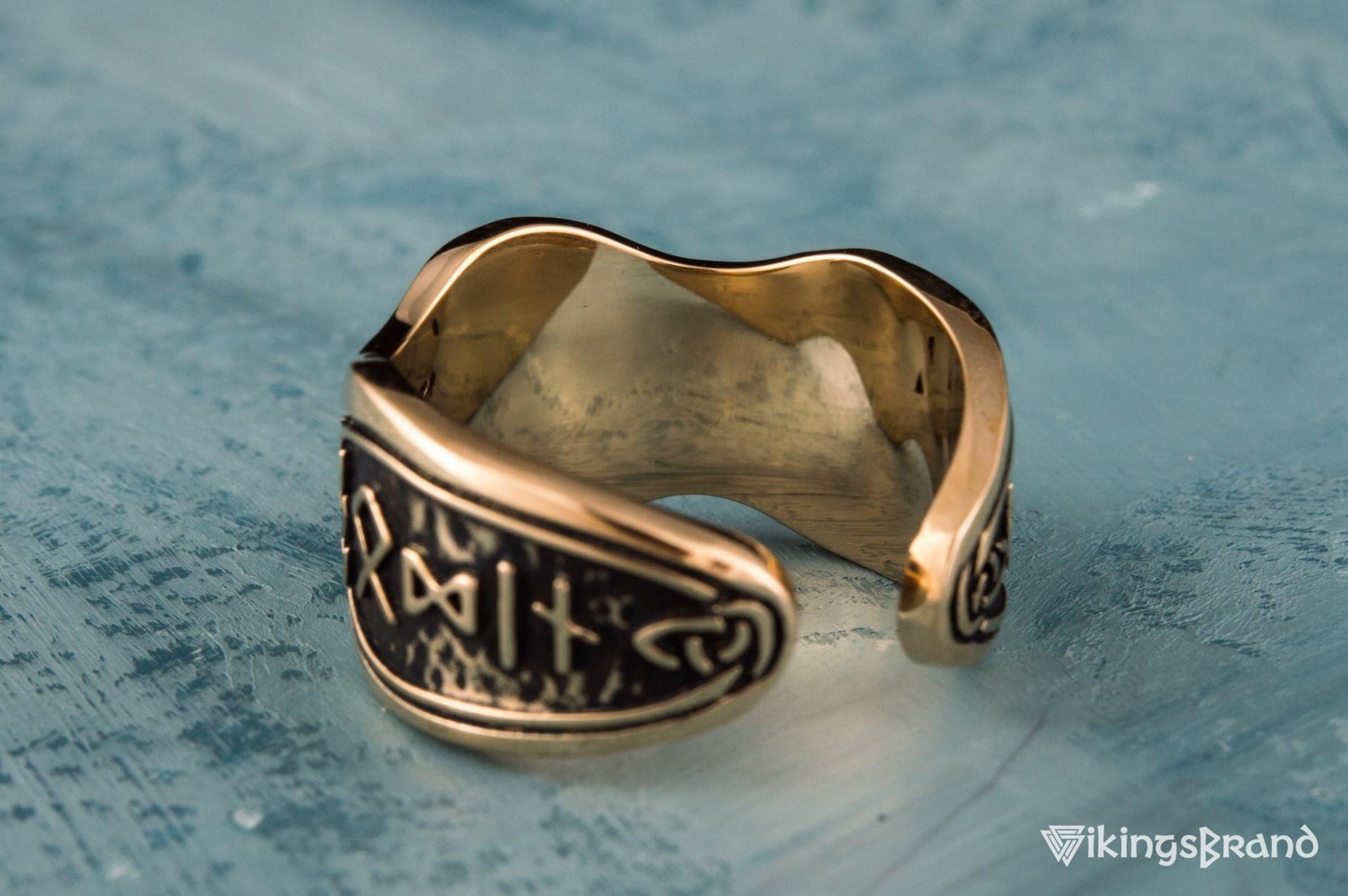 Vikings Helm of Awe Symbol with Hail Odin Bronze Viking Ring