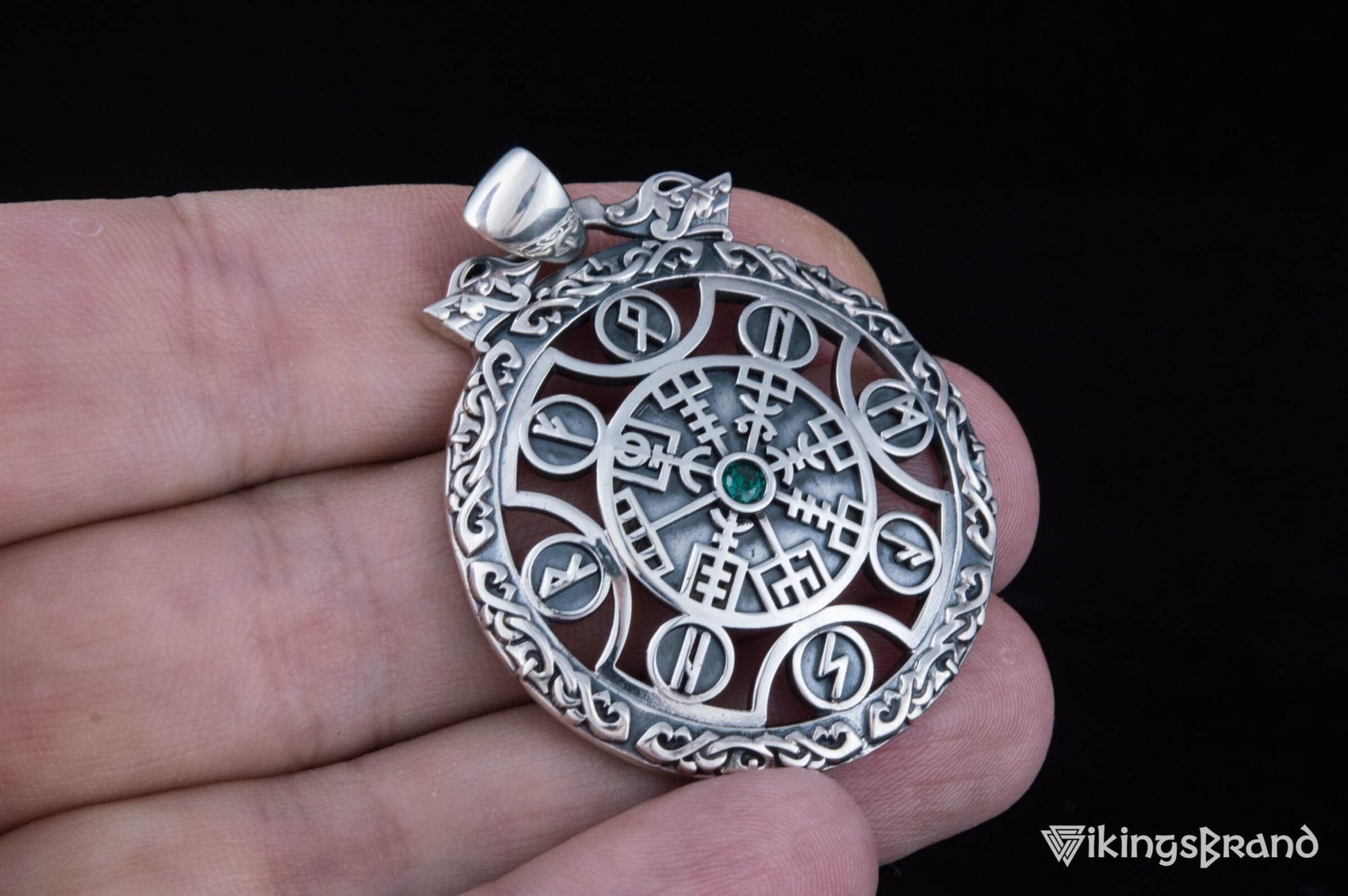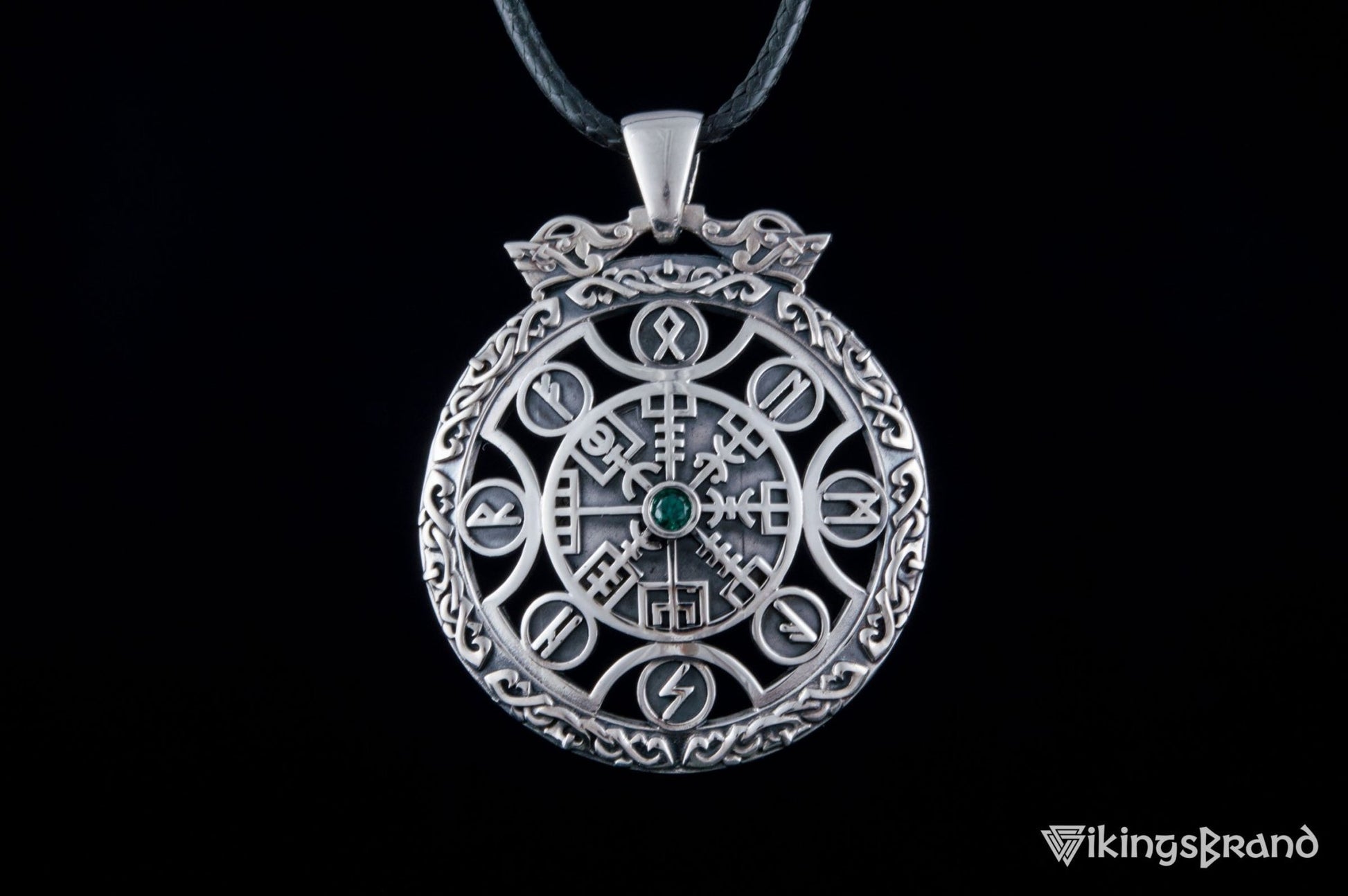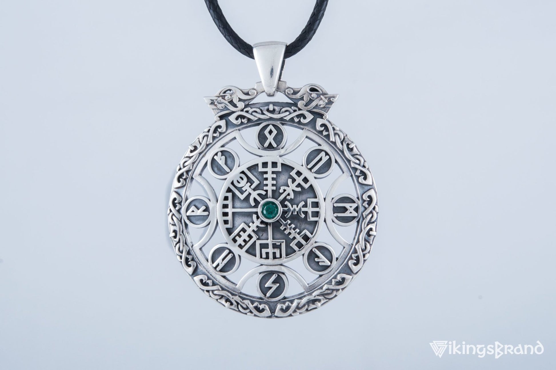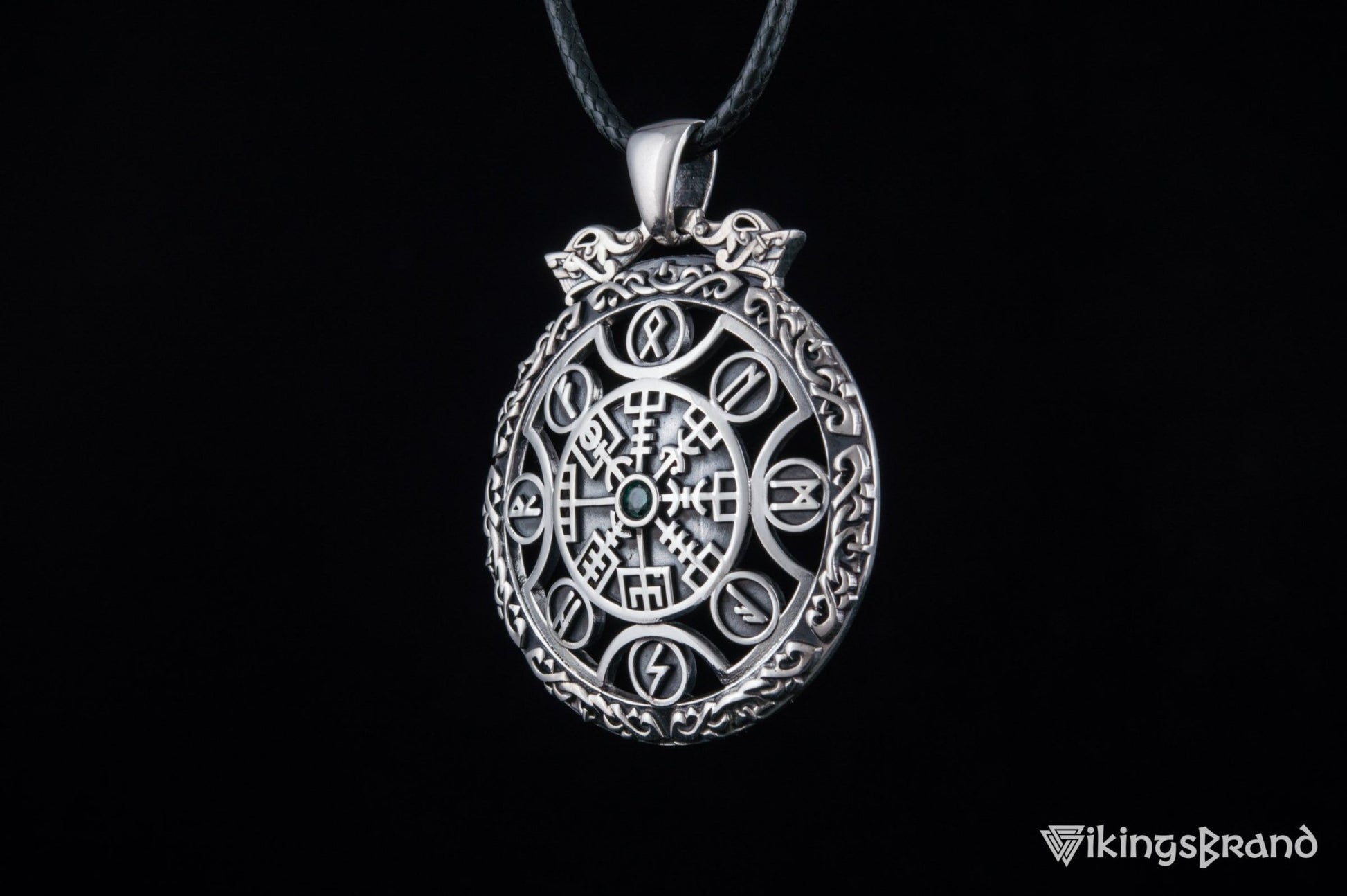 Vegvisir Vikings Symbol Pendant with Viking Runes Ornament Sterling Silver Jewelry