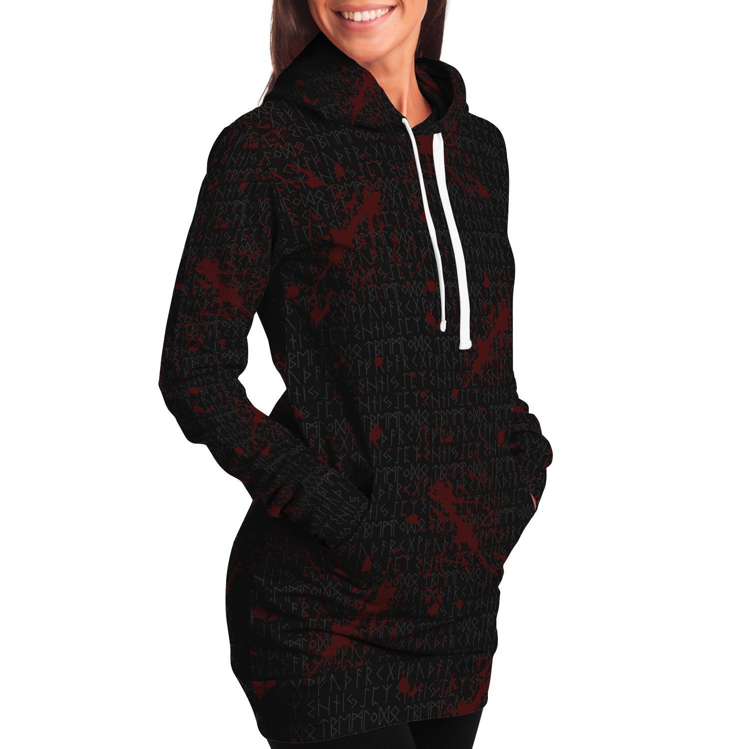 This longline hoodie is made from a soft cotton and polyester faced fabric with a nice brushed fleece on the inside. Fitted with a feminine shaped silhouette for ultimate comfort. Each panel is individually printed, cut and sewn to ensure a flawless graphic with no imperfections.