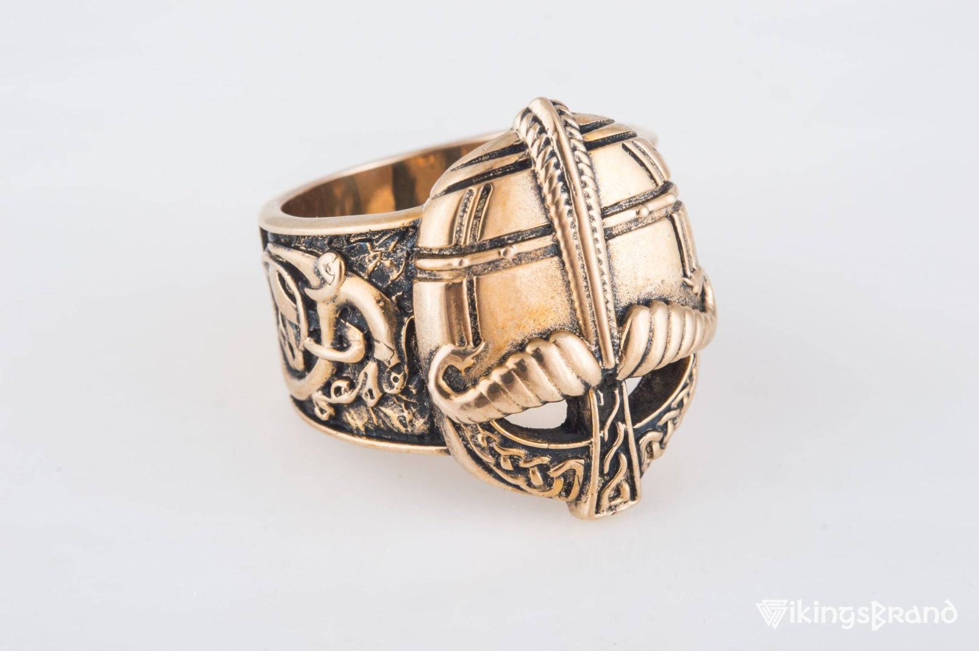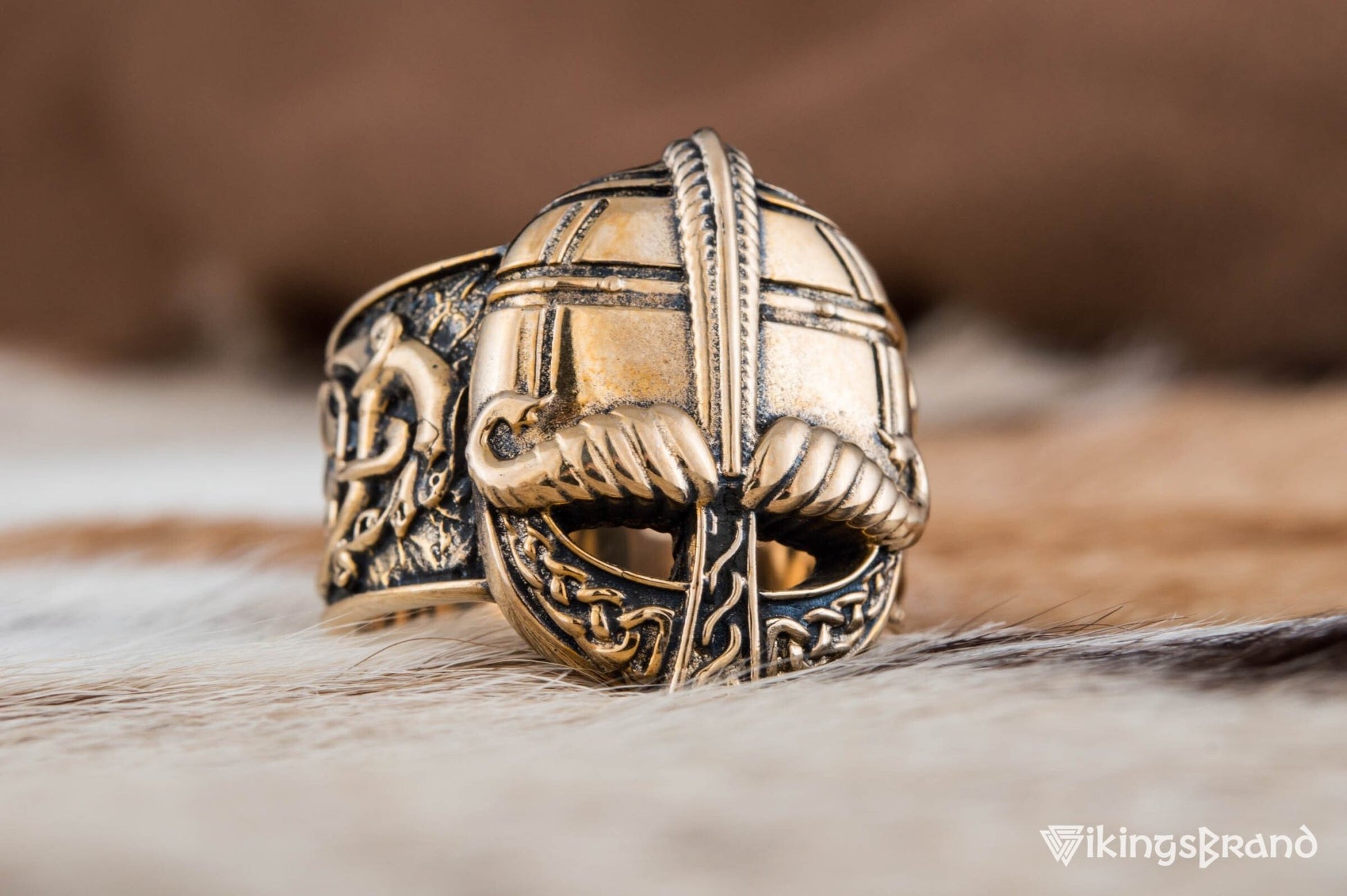Viking Bronze Helmet Ring with Ornament Unique Vikings Jewelry