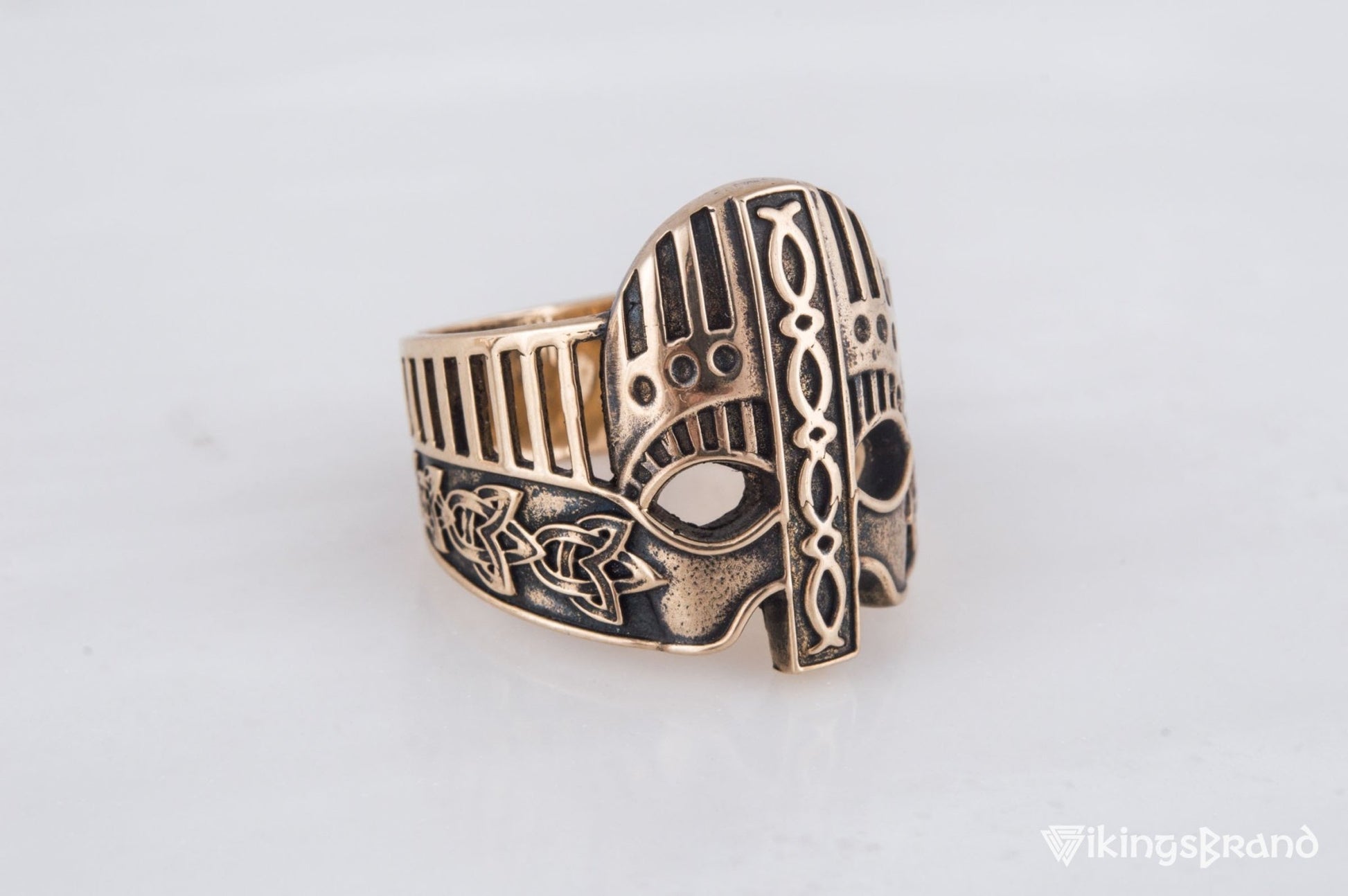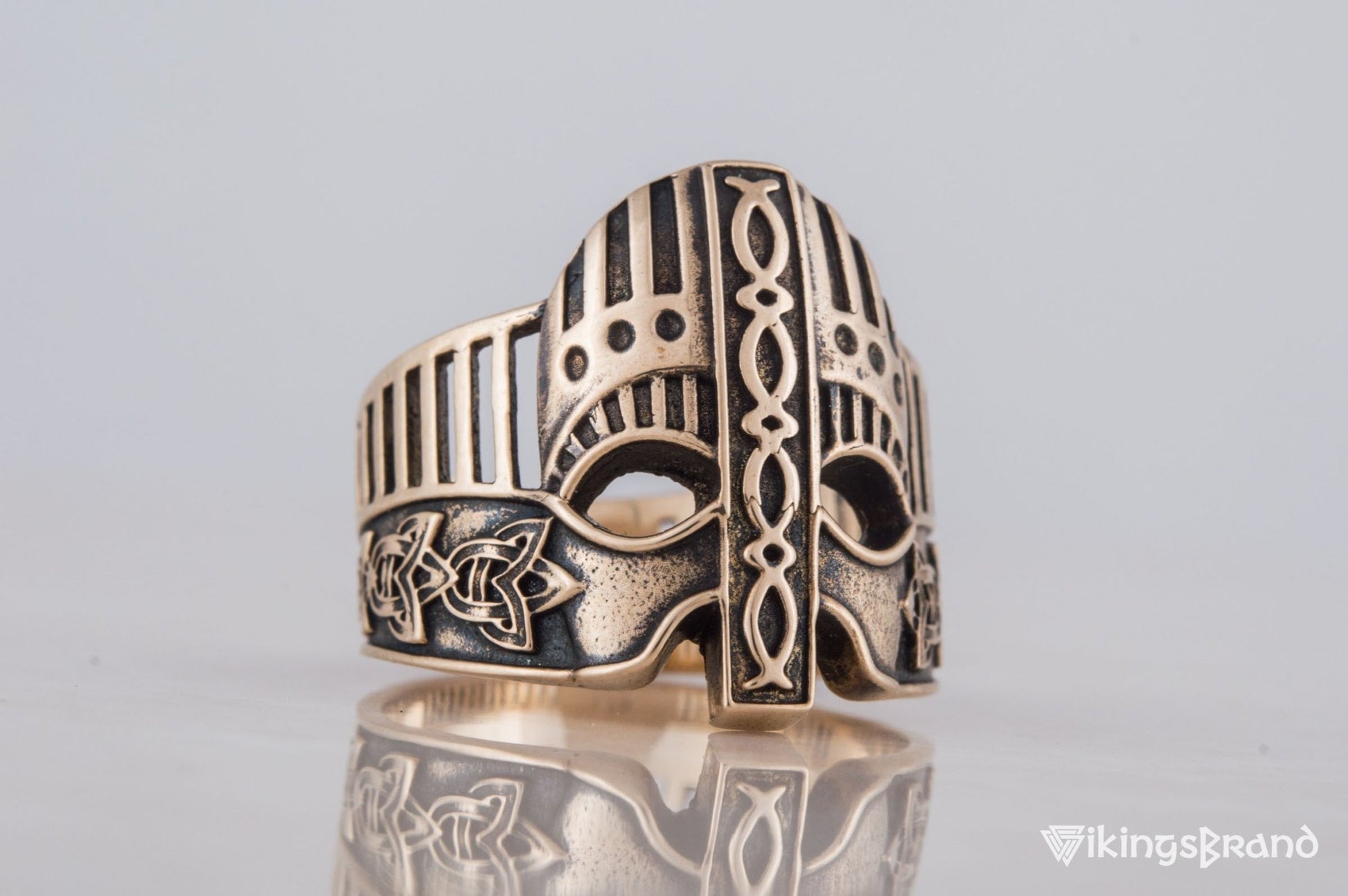 Viking Helmet with Norse Ornament Bronze Unique Vikings Ring