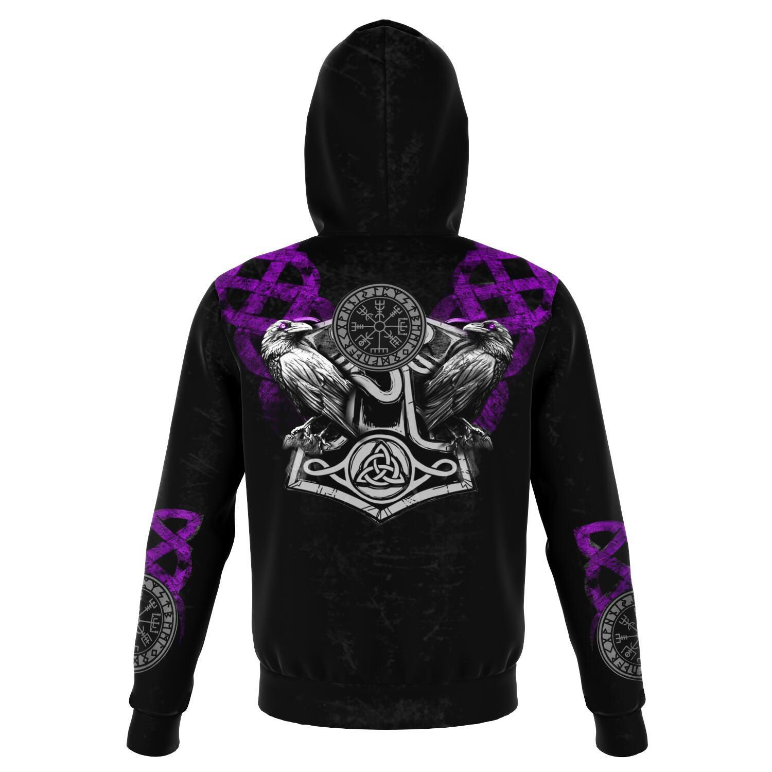 Viking Hoodie with Wolves Geri and Freki, and Ravens Hugin and Muninn.