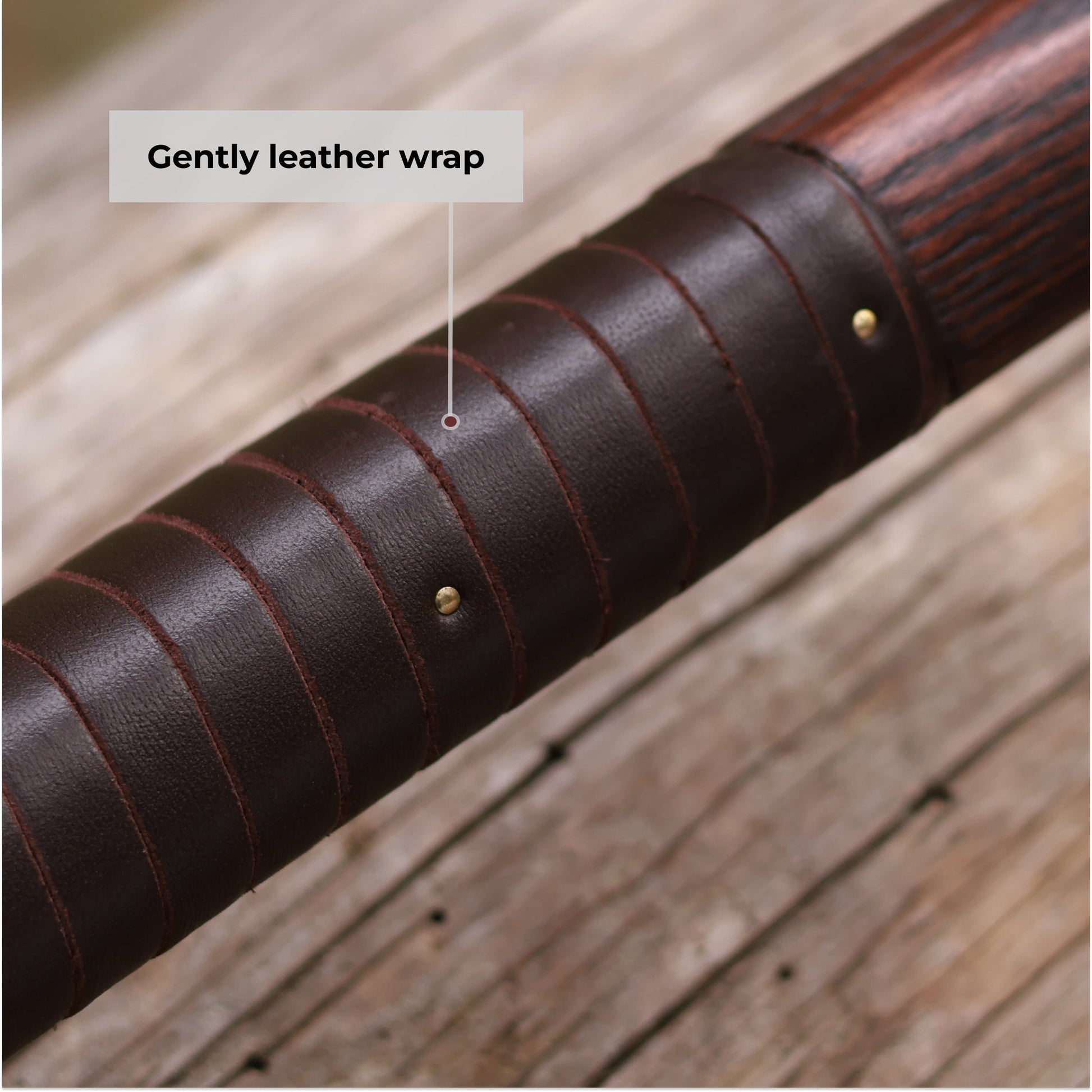 Crafted from high-carbon steel W108, hardened for durability, and paired with a hand-carved ash wood handle wrapped in soft genuine leather, this axe offers both power and elegance. It’s a perfect fusion of warrior spirit and artisanal mastery.