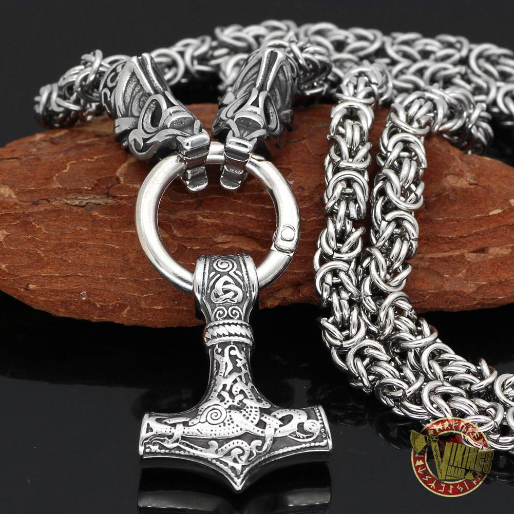 Viking Wolf Head Necklace with Mjolnir!