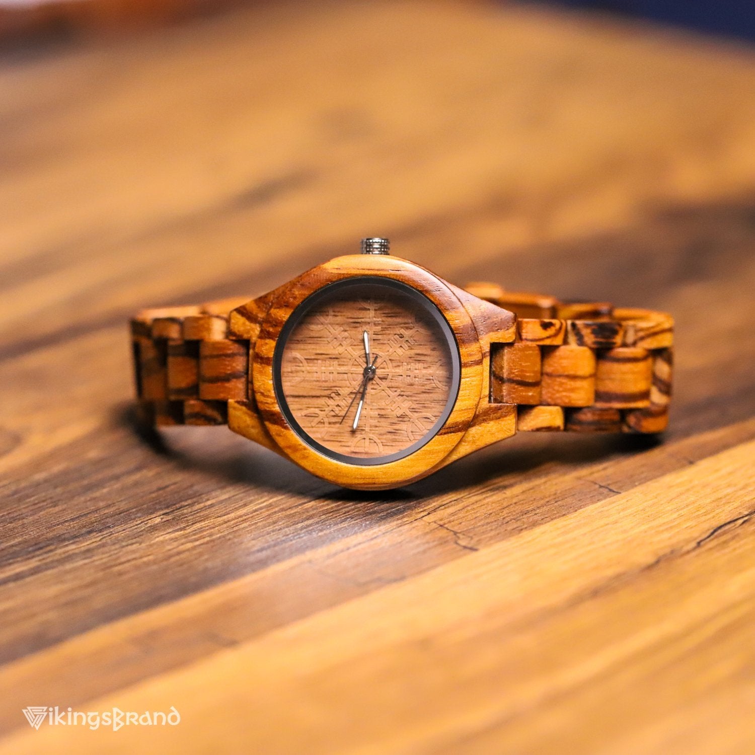 A handmade watch featuring Helm of Awe on a gentle woman's hand will arouse awe and admiration, as the brave Viking shieldmaidens aroused in the people during the Viking Era (and beyond).
