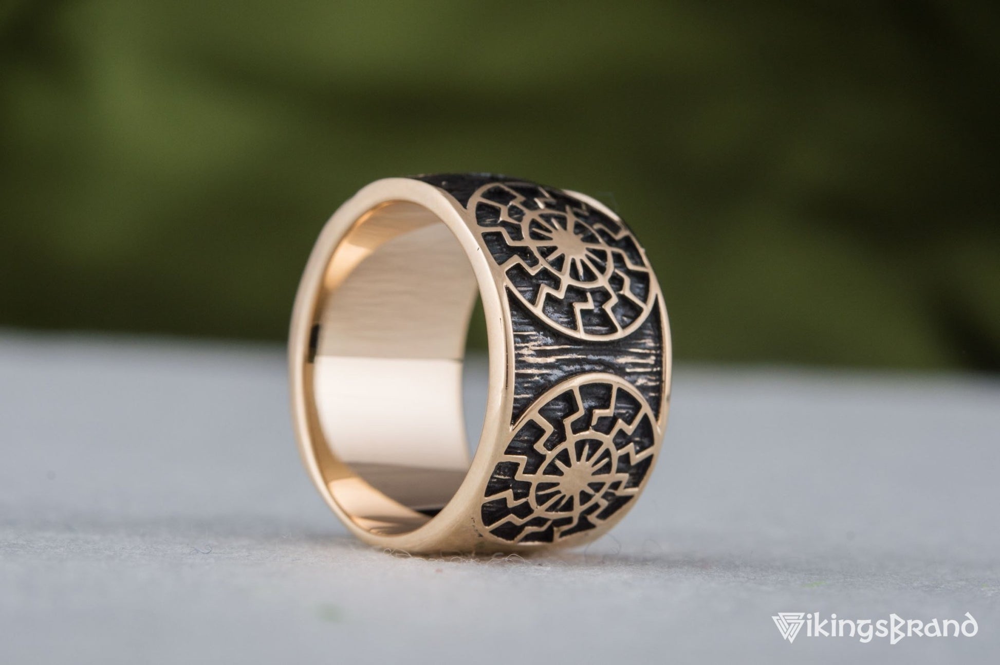 Vikings Black Sun Symbol Ring Bronze Norse Jewelry