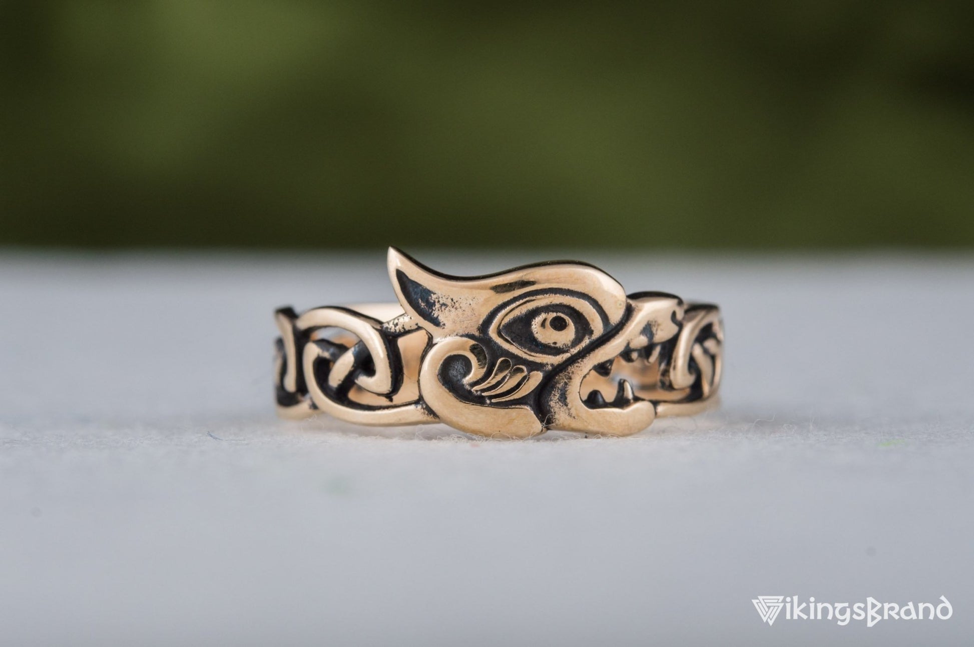 Vikings Fenrir Ring with Viking Ornament Bronze Norse Jewelry