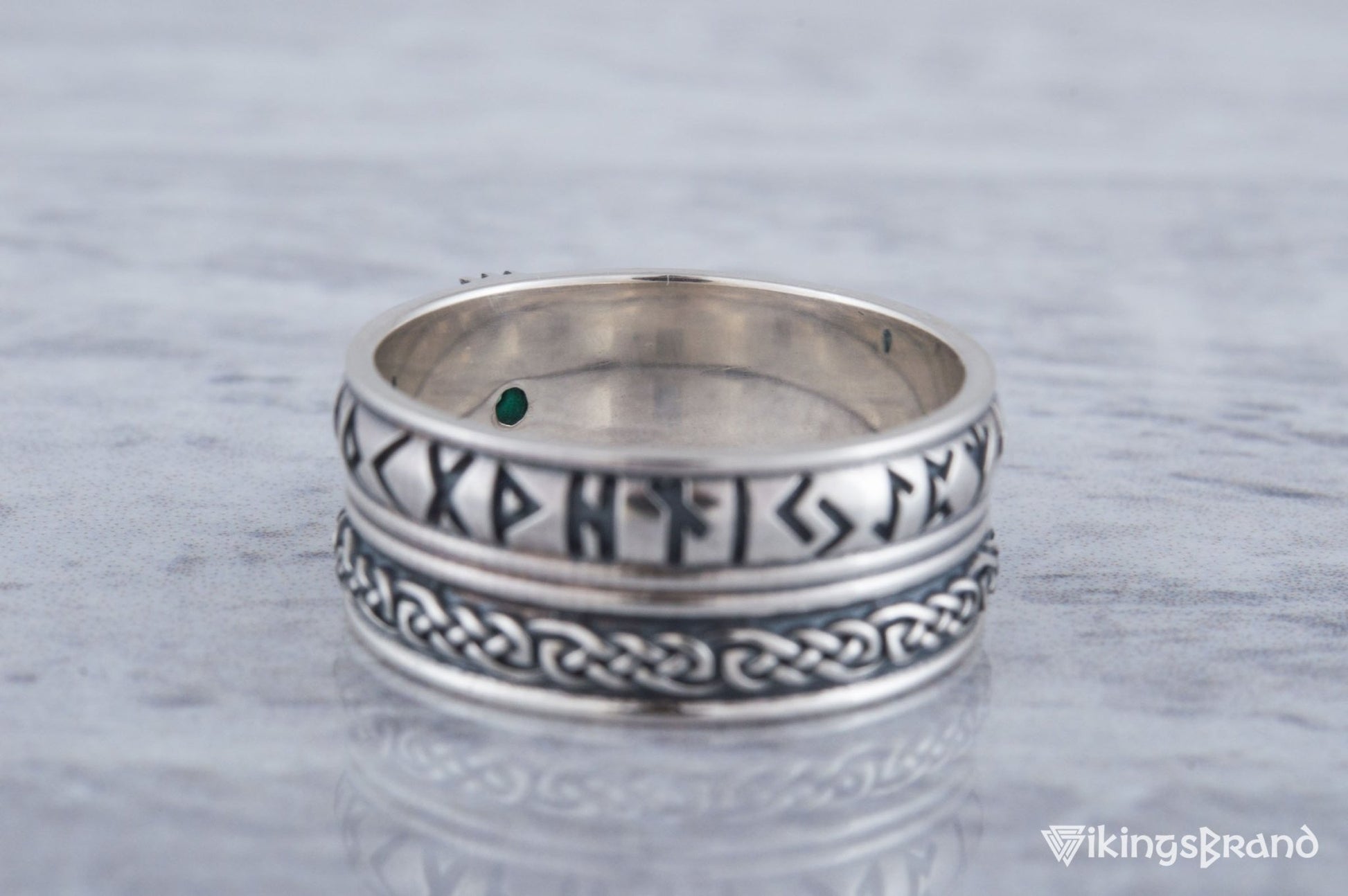 Vikings Helm of Awe Symbol with Runes Ornament and CZ Sterling Silver Viking Ring