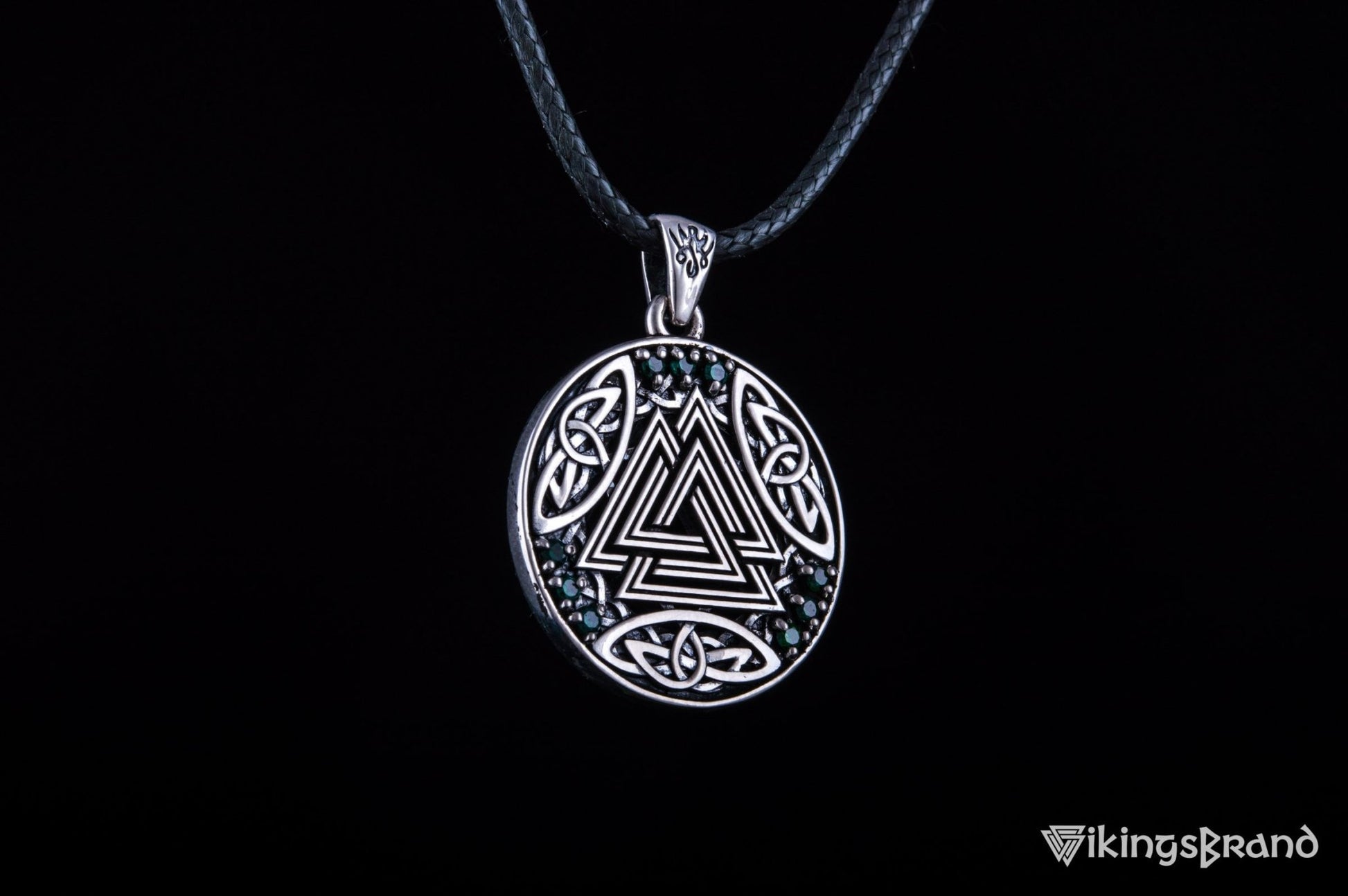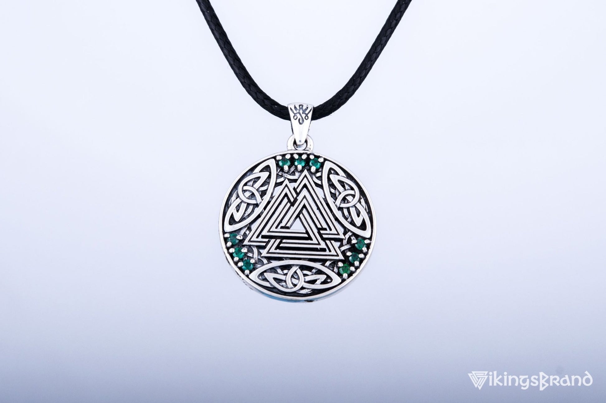 Vikings Norse Pendant with Valknut Symbol and Cubic Zirconia Sterling Silver Handmade Jewelry