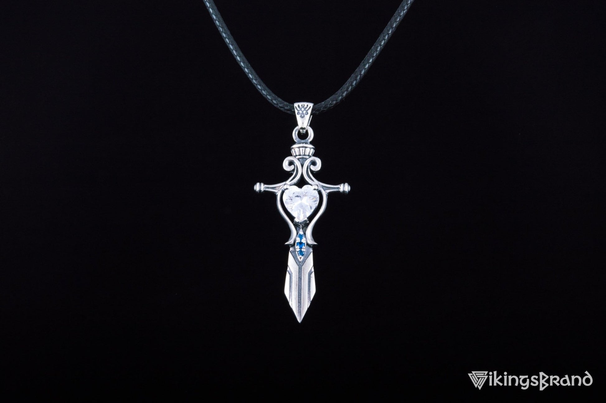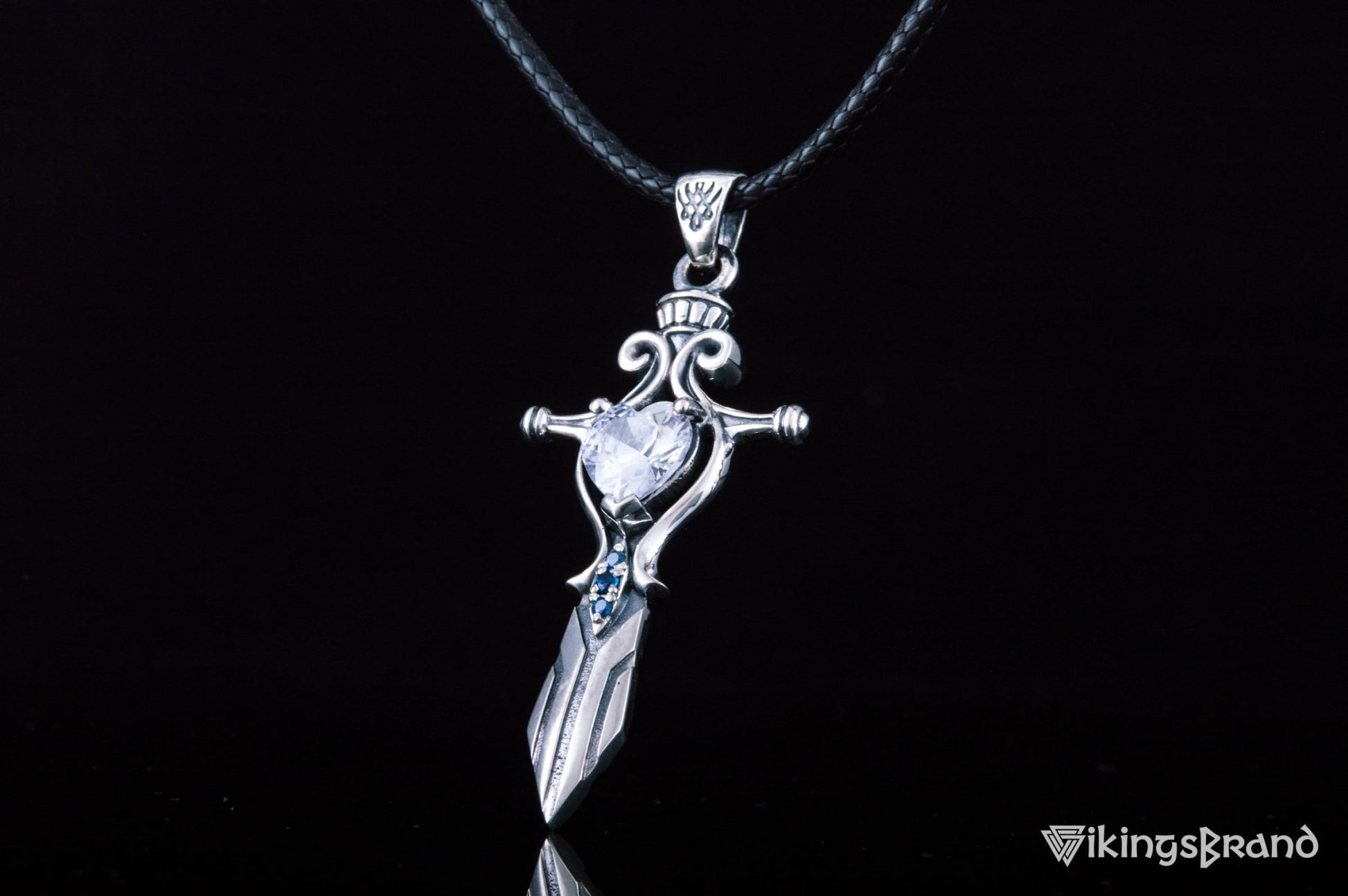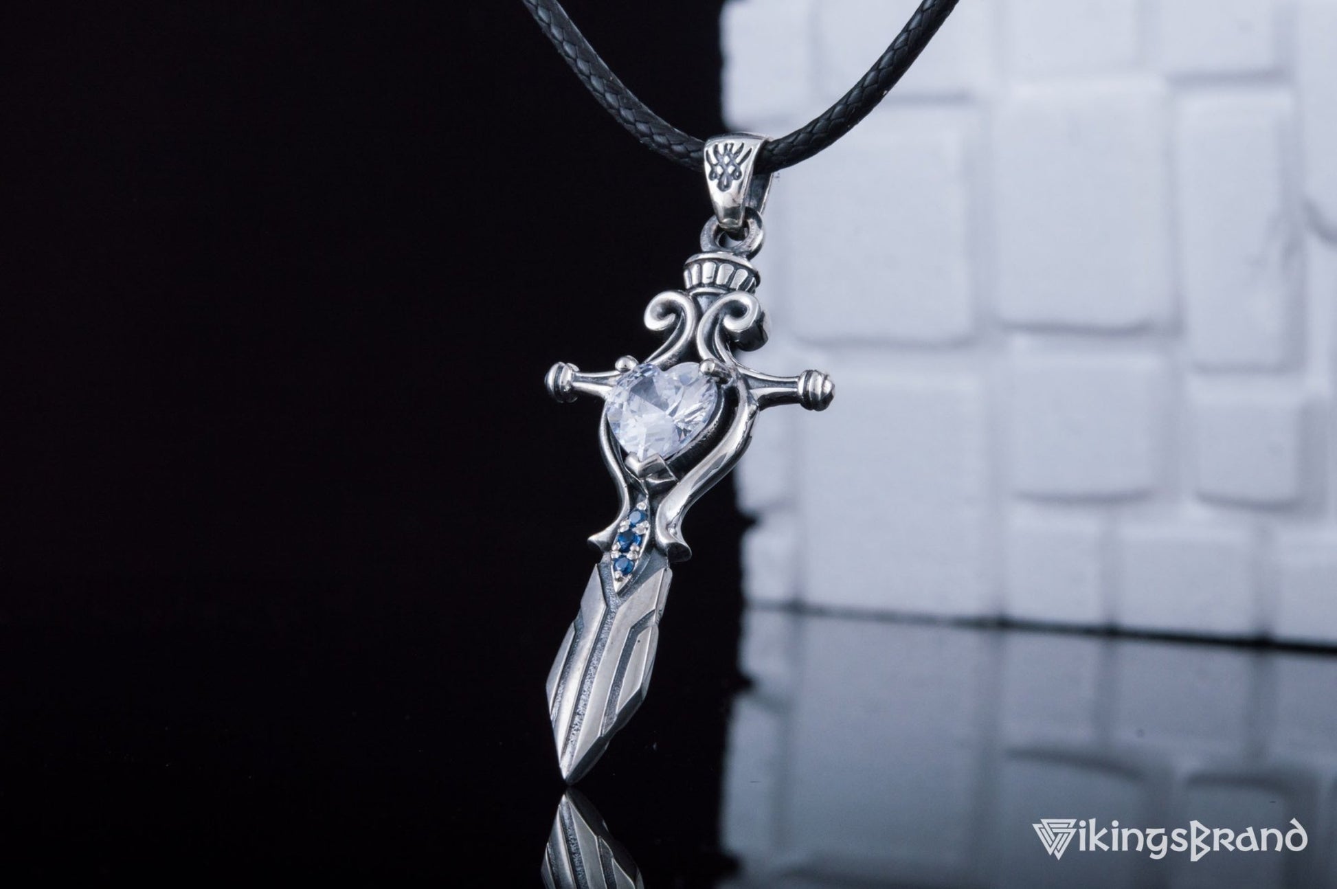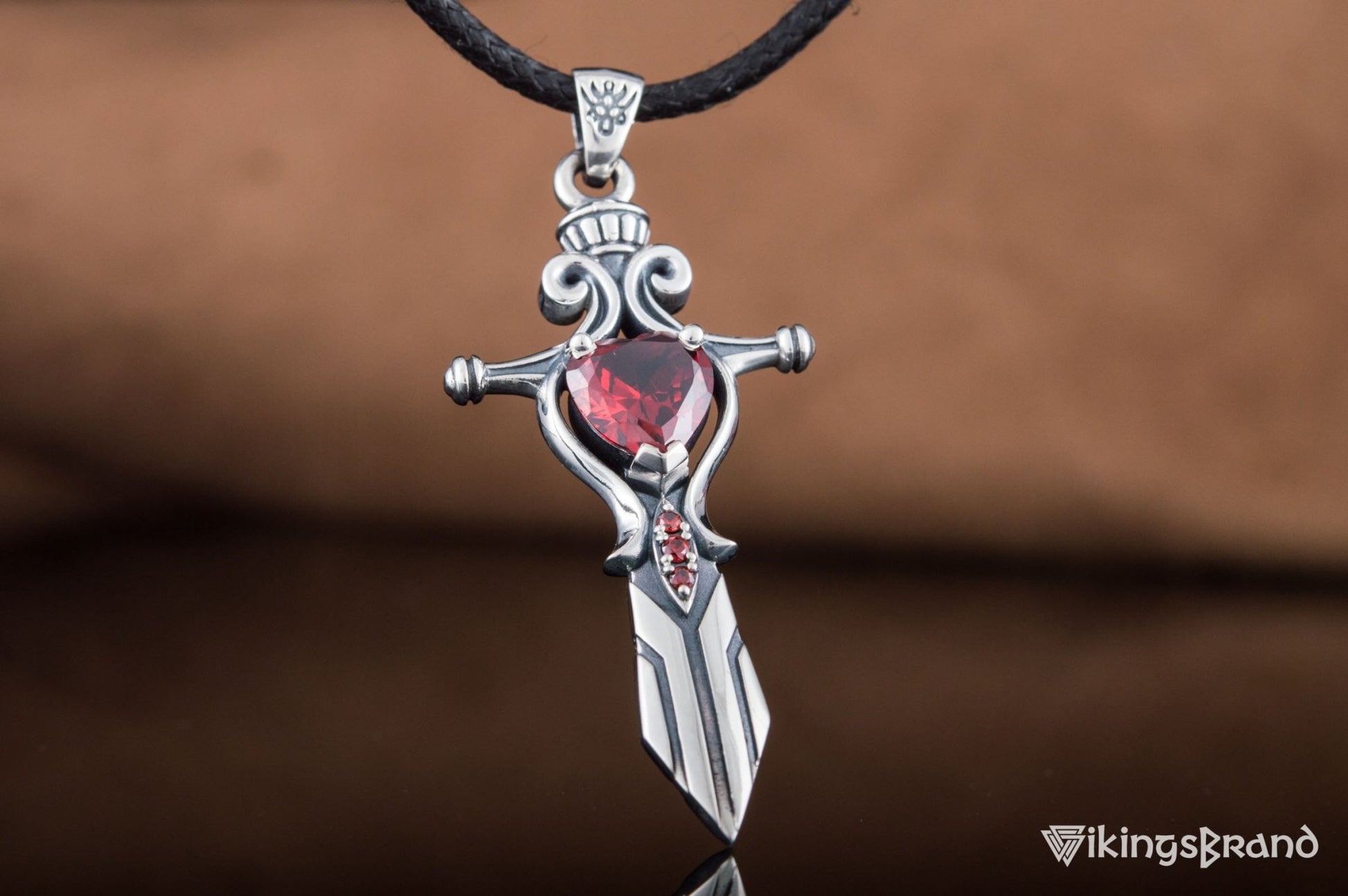 Vikings Norse Sword with Red Cubic Zirconia Pendant Sterling Silver Handmade Jewelry