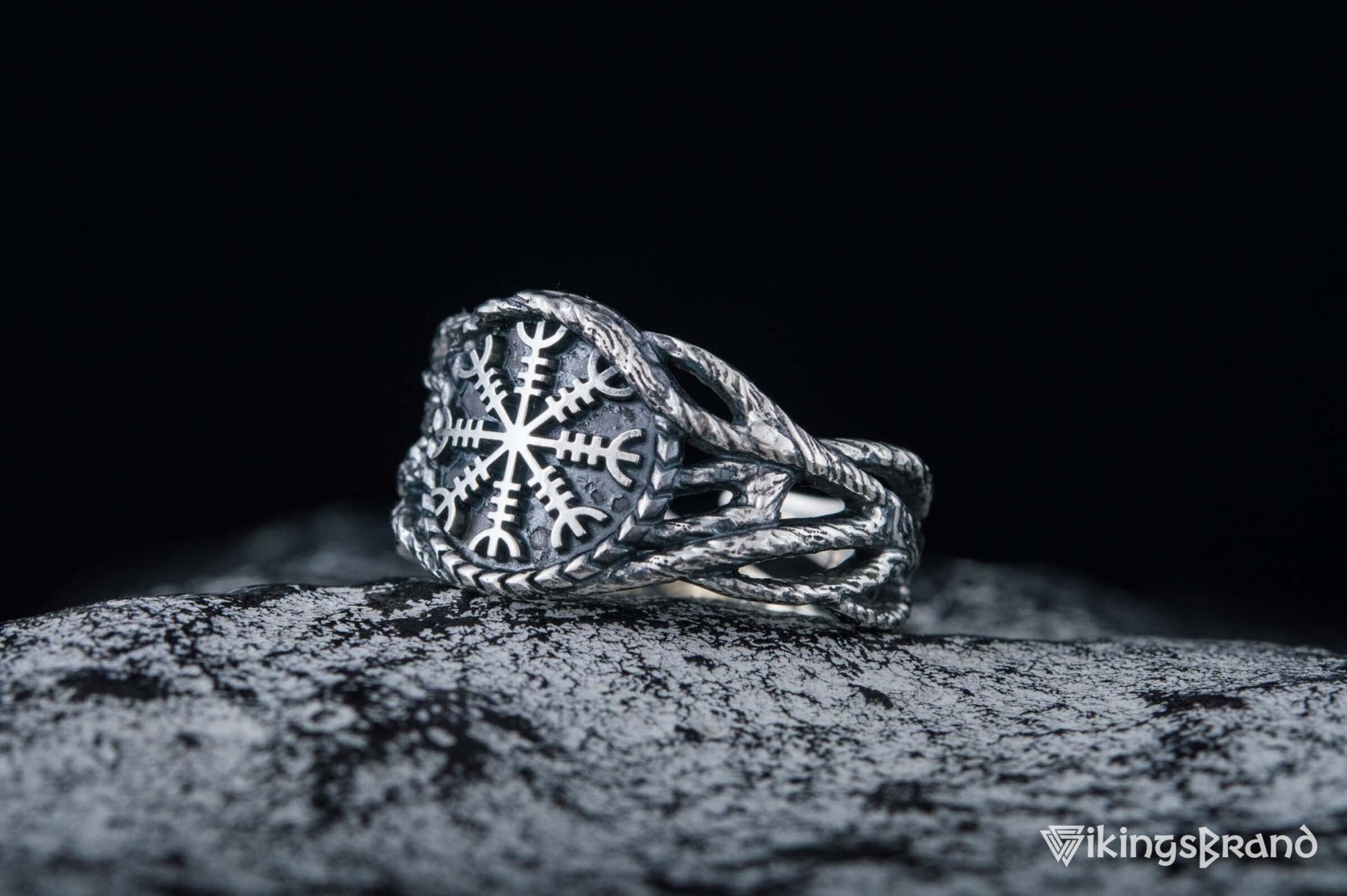 Vikings Ring with Helm of Awe Sterling Silver Handmade Jewelry