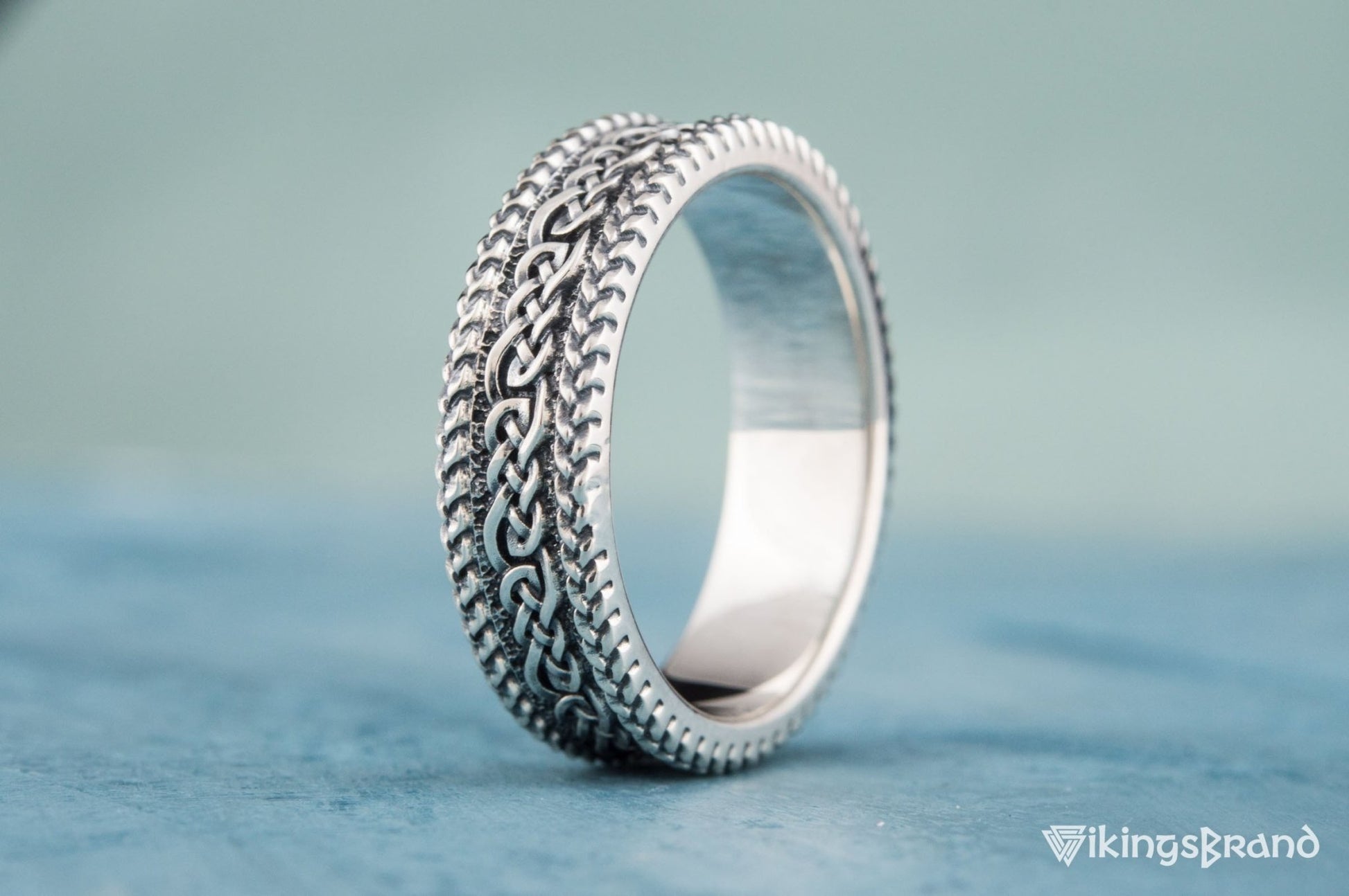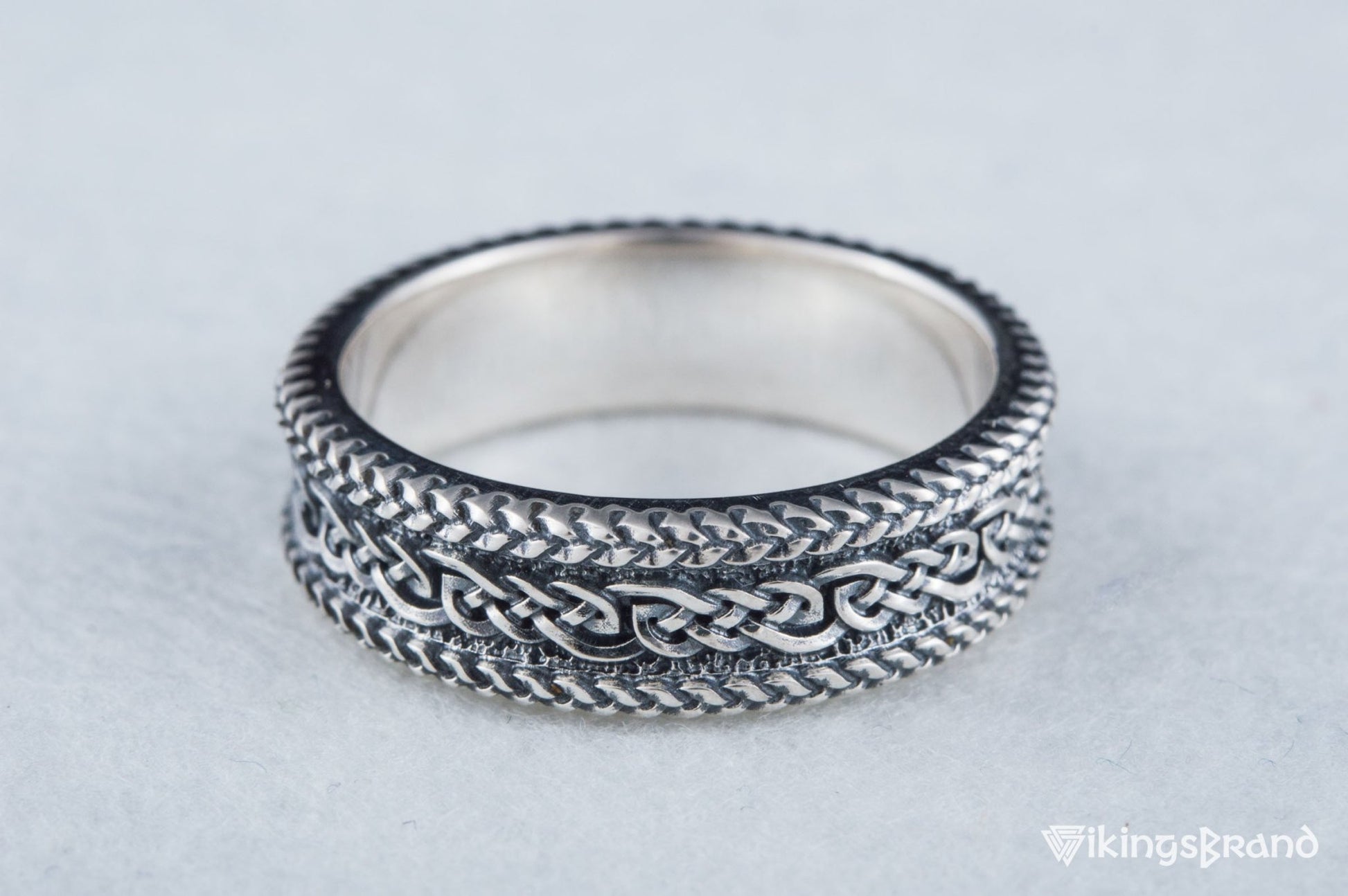 Vikings Ring with Ornament Sterling Silver Handcrafted Viking Jewelry
