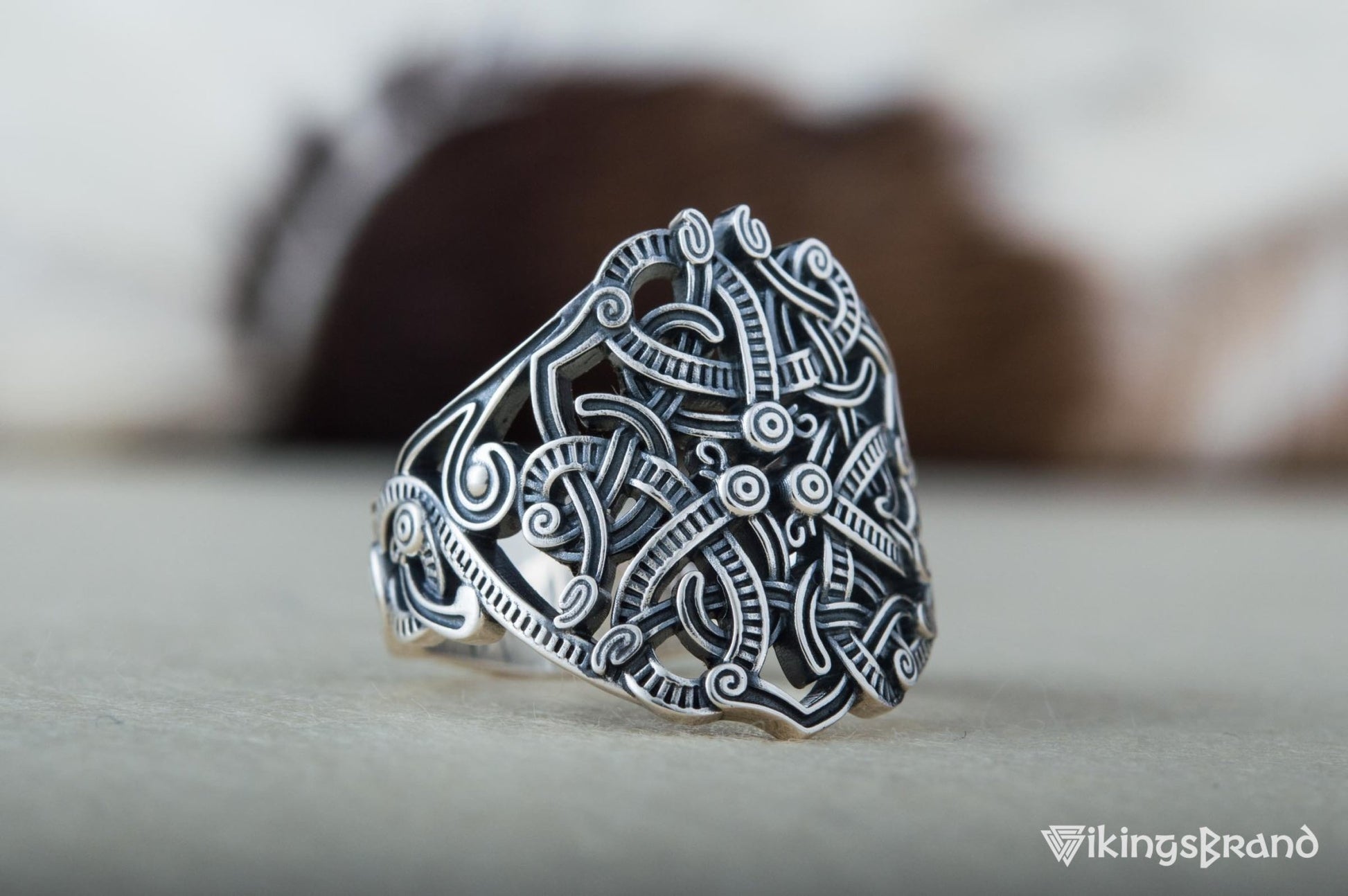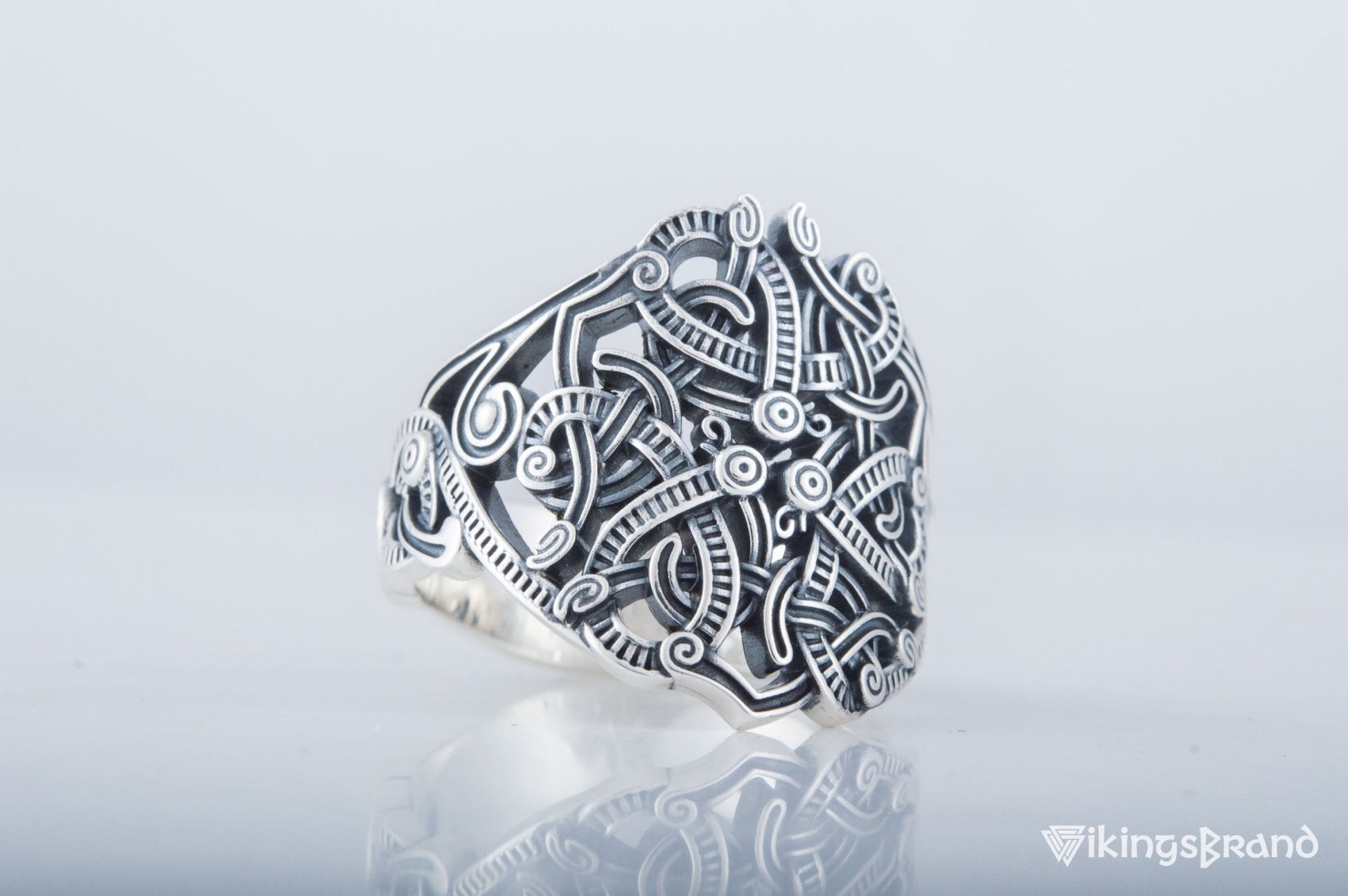 Vikings Ring with Ornament Sterling Silver Handmade Jewelry