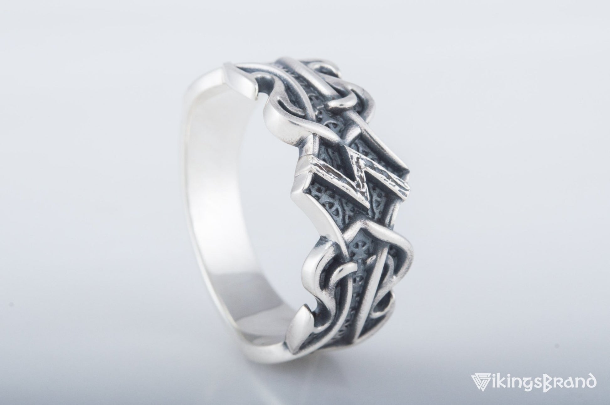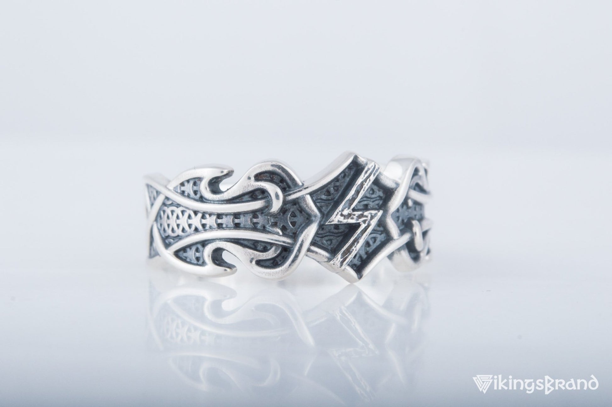 Vikings Ring with Sowelu Rune and Norse Ornament Sterling Silver Viking Jewelry