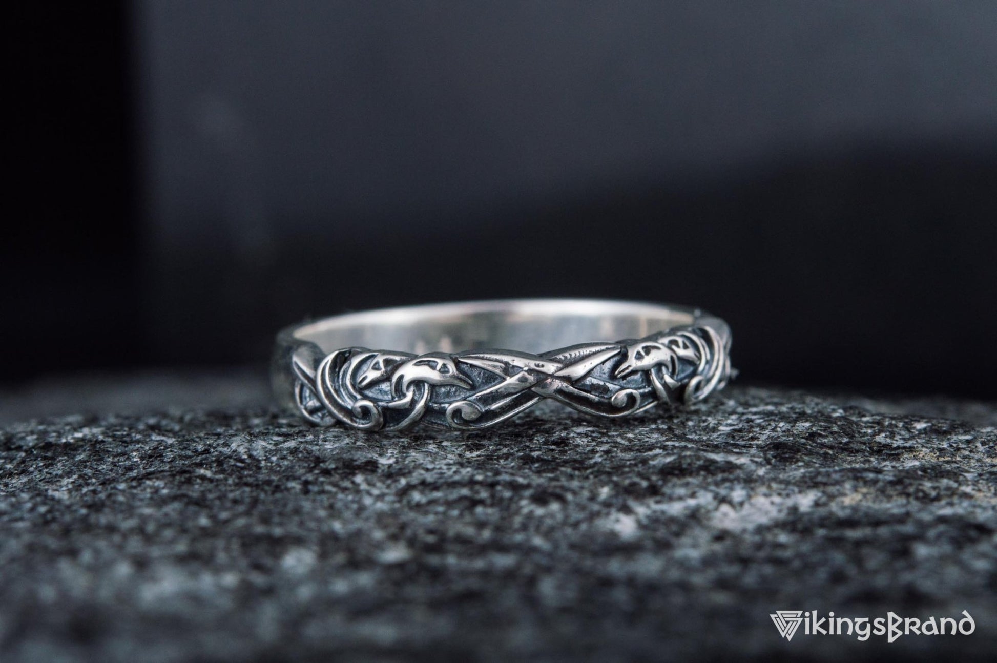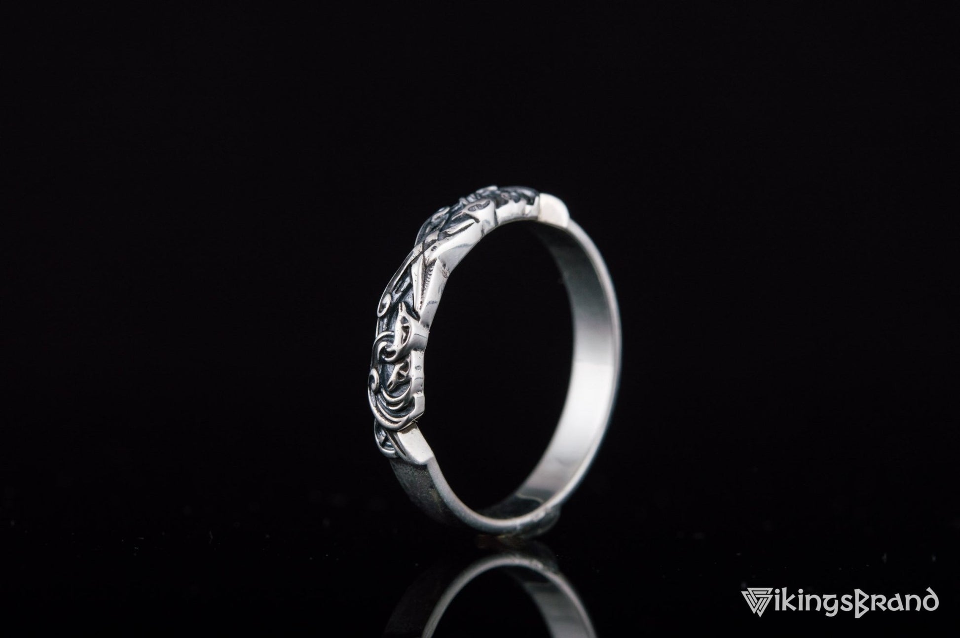 Vikings Ring with Viking Ornament Sterling Silver Jewelry