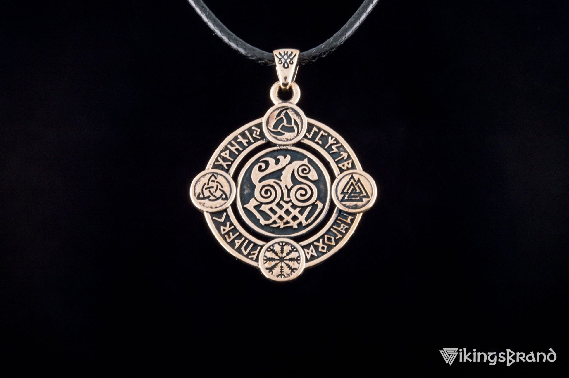 Vikings Sleipnir Pendant with Norse Symbols Bronze Viking Jewelry