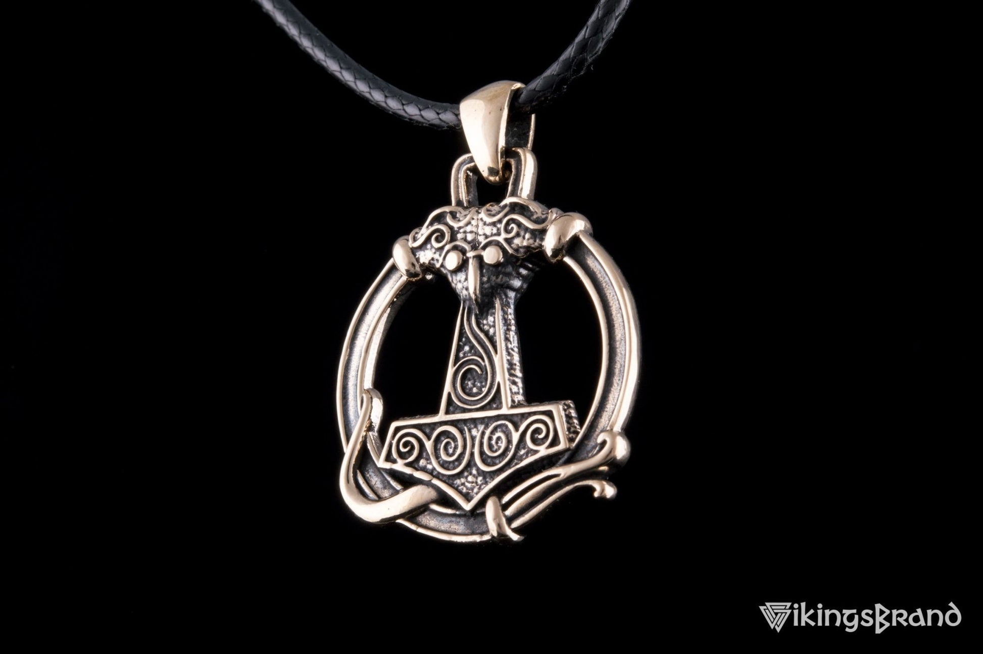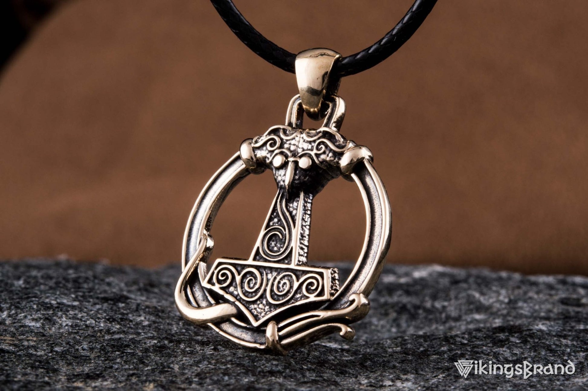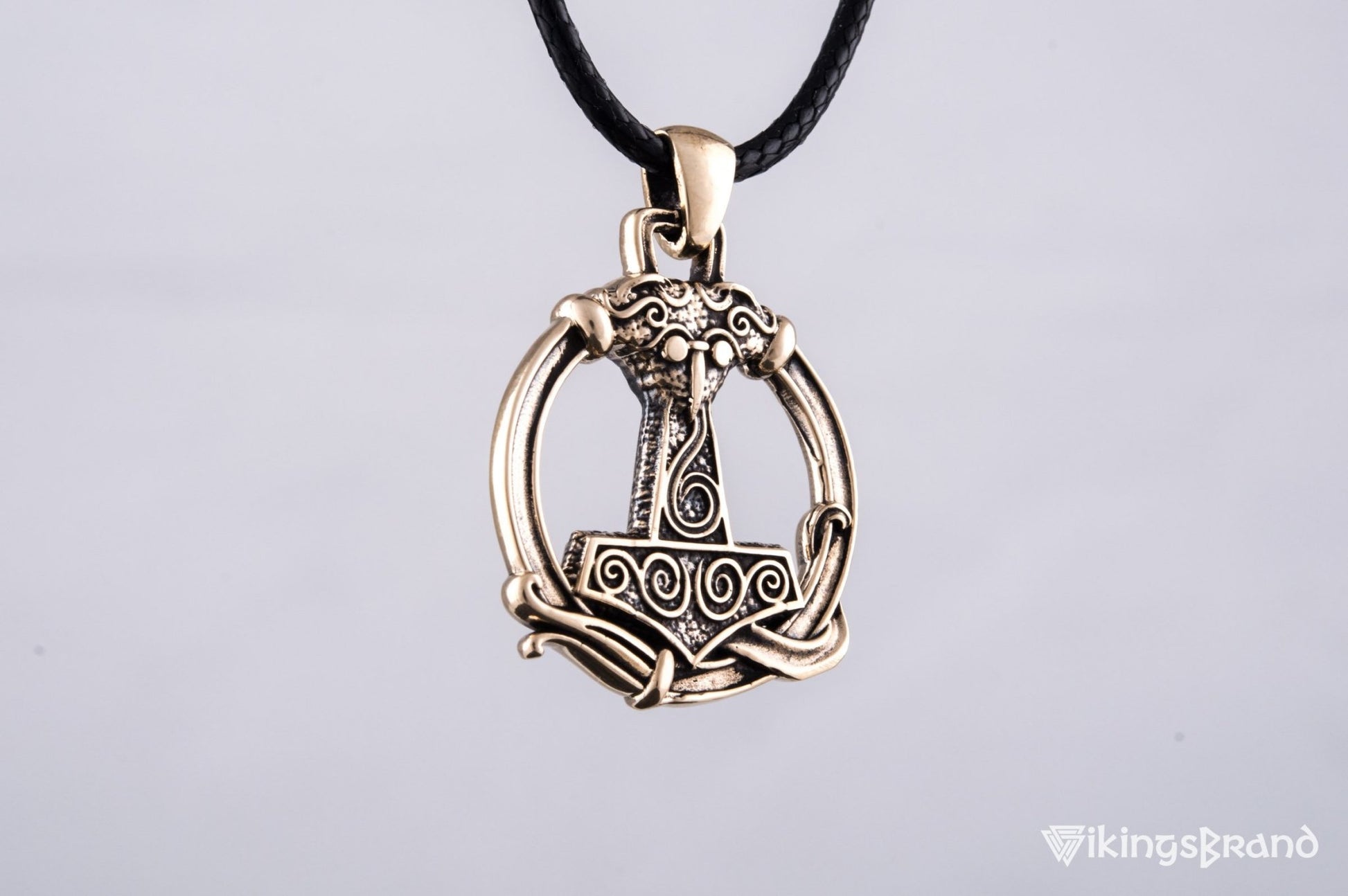 Vikings Thors Hammer Pendant with Ornament Bronze Unique Handmade Jewelry