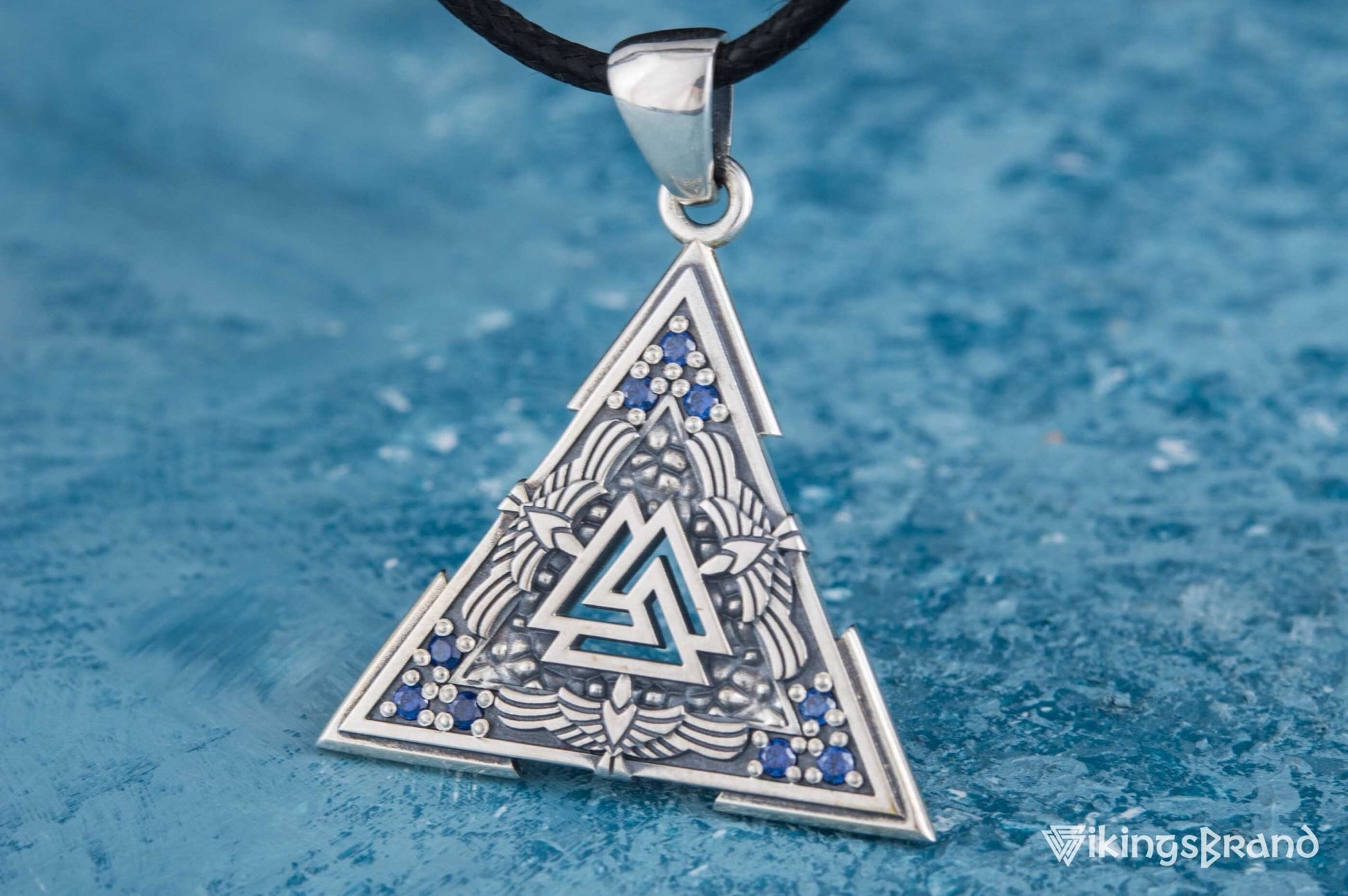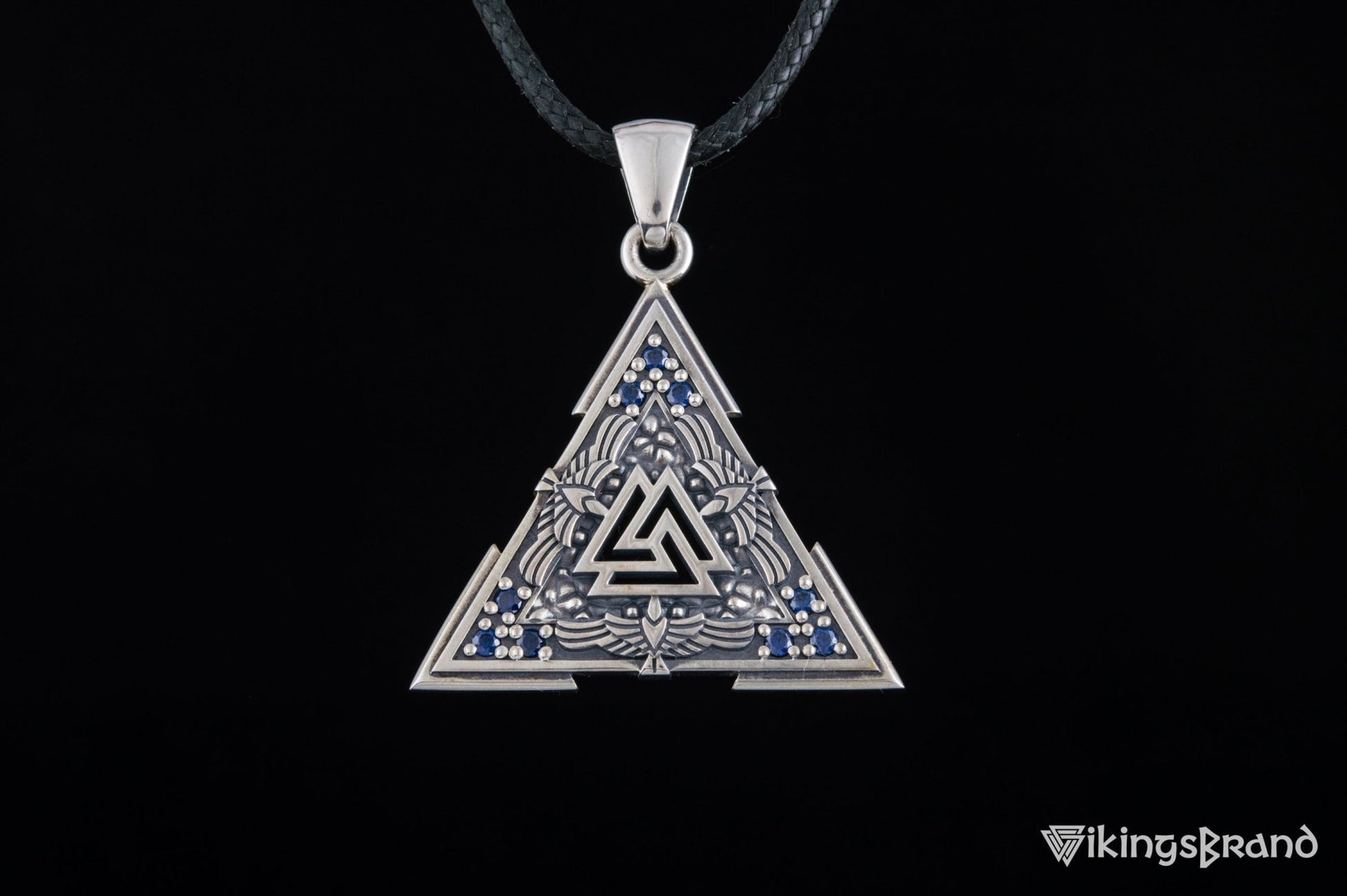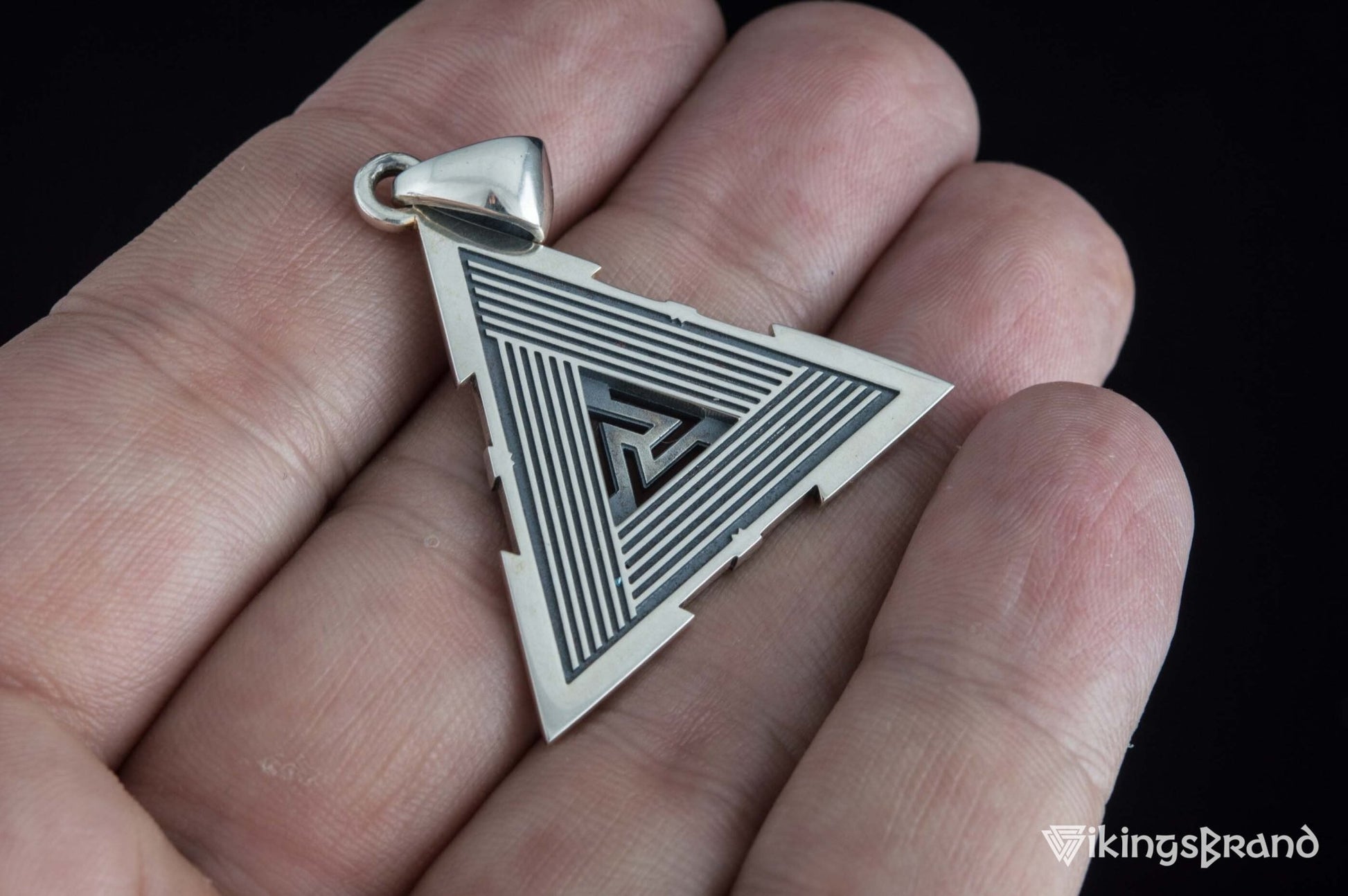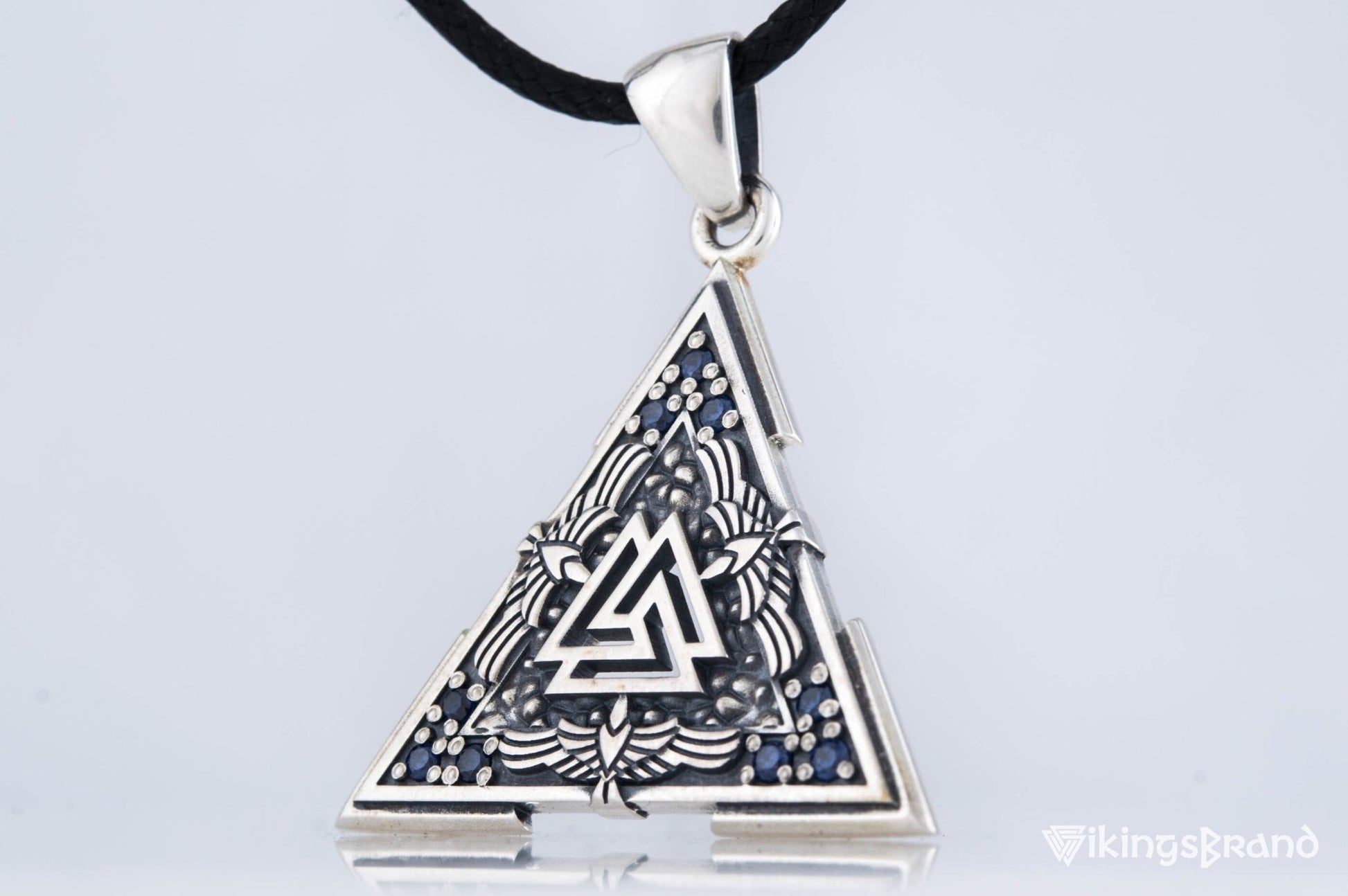 Vikings Valknut Symbol Pendant with Raven Ornament Sterling Silver Norse Jewelry