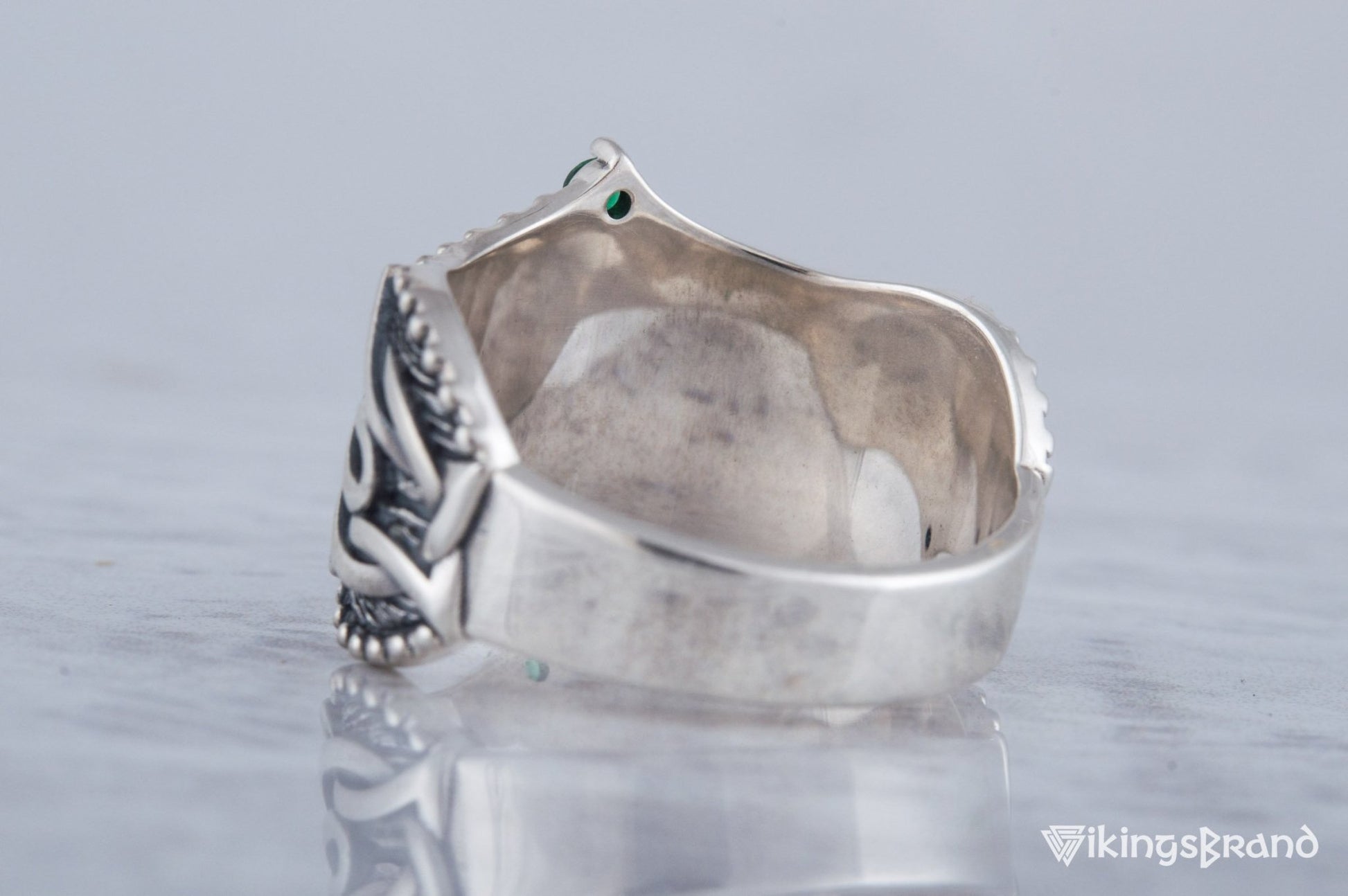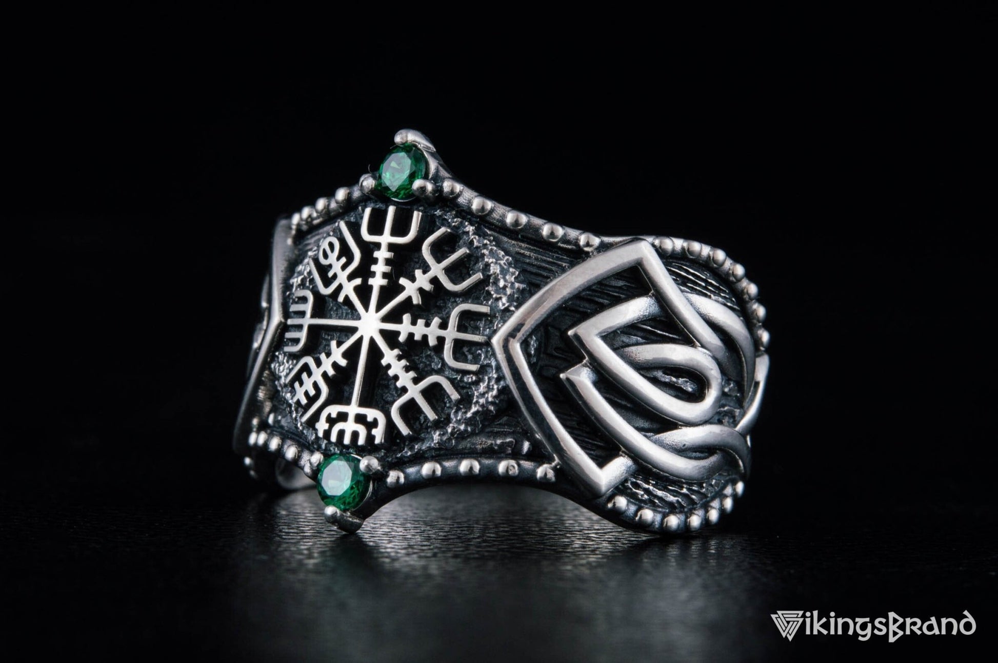 Vikings Vegvisir Symbol with Norse Ornament and CZ Sterling Silver Viking Ring