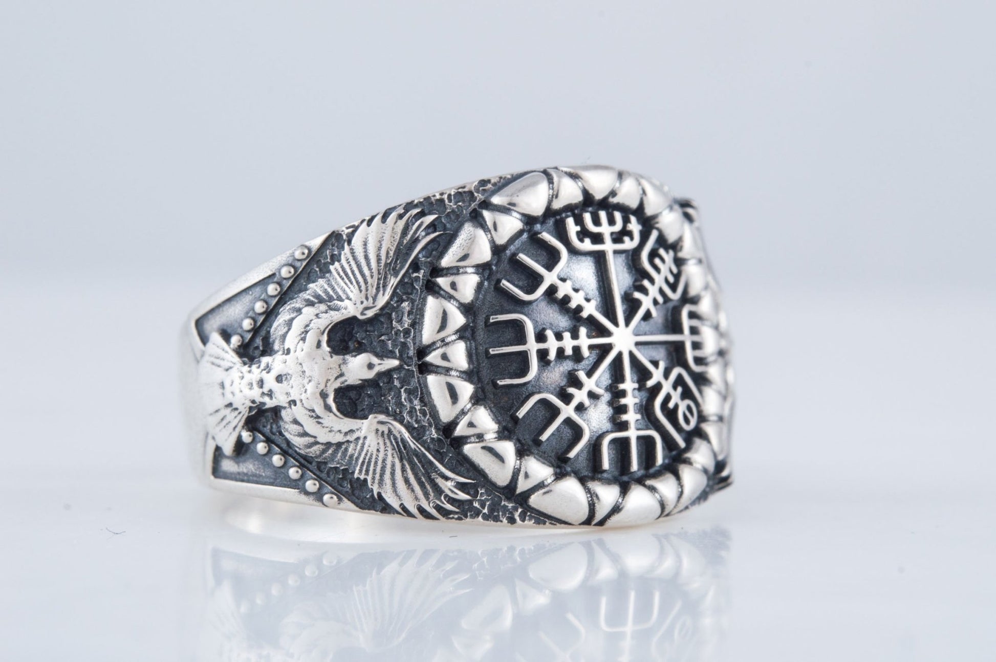 Vikings Ring with Scandinavian Runes Sterling Silver Unique Handmade Jewelry