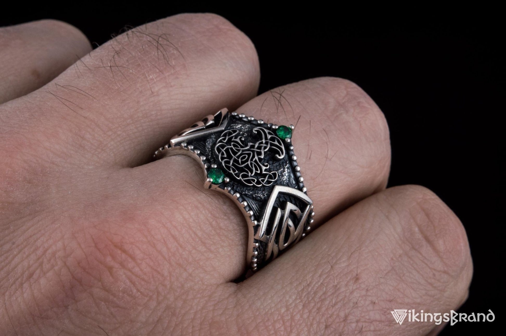 Vikings Yggdrasil Symbol with Norse Ornament Sterling Silver Viking Ring