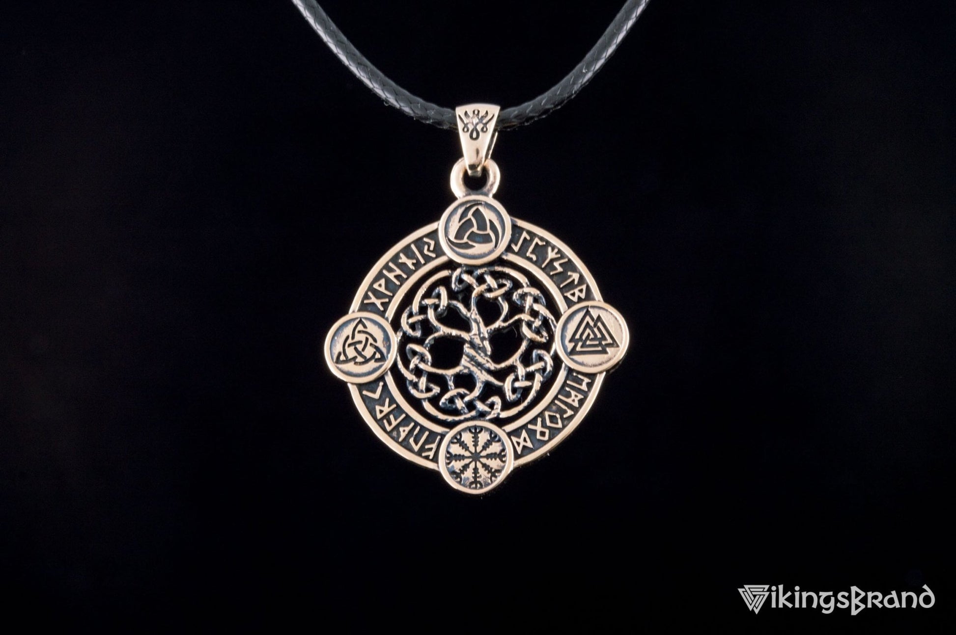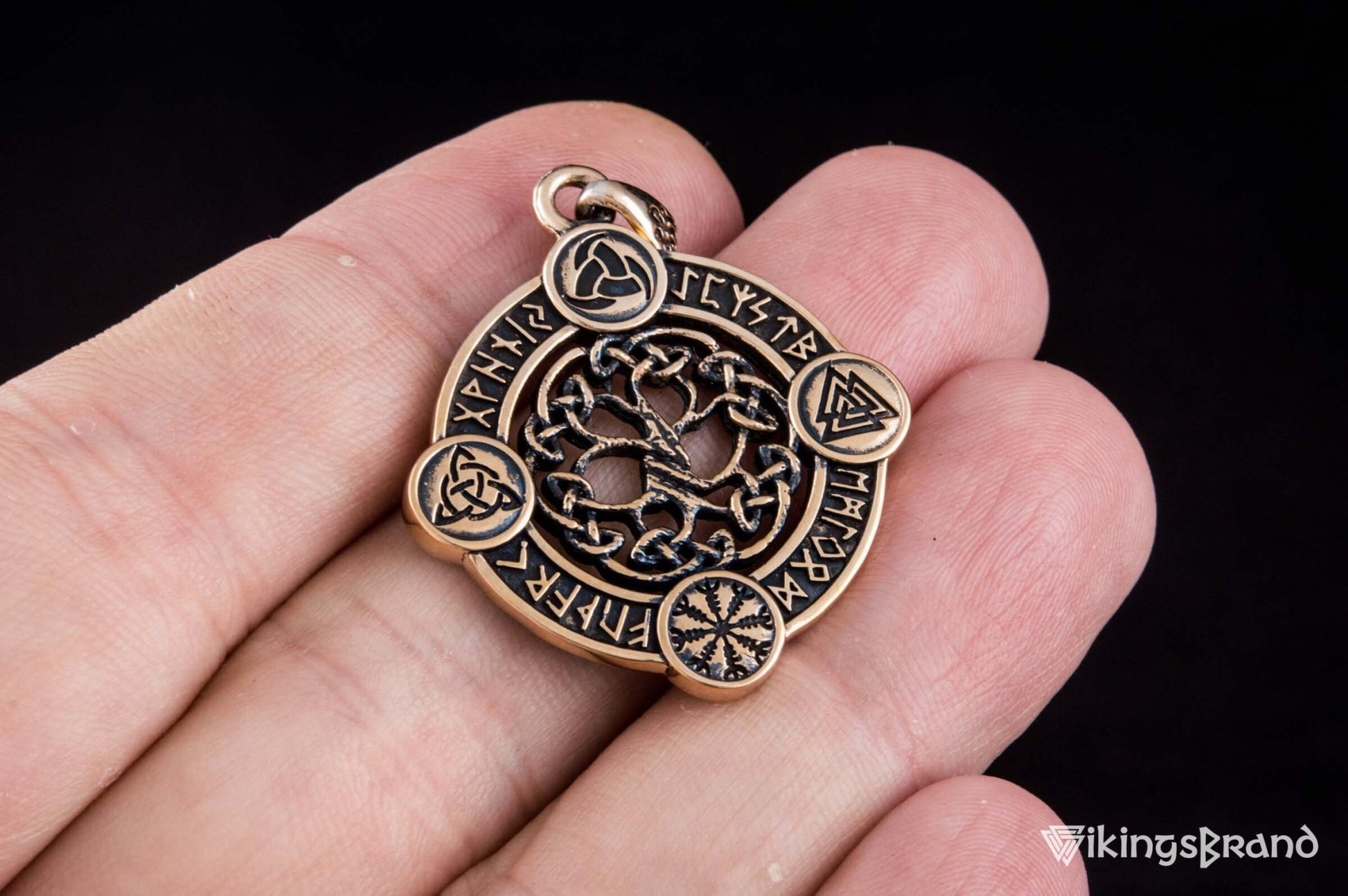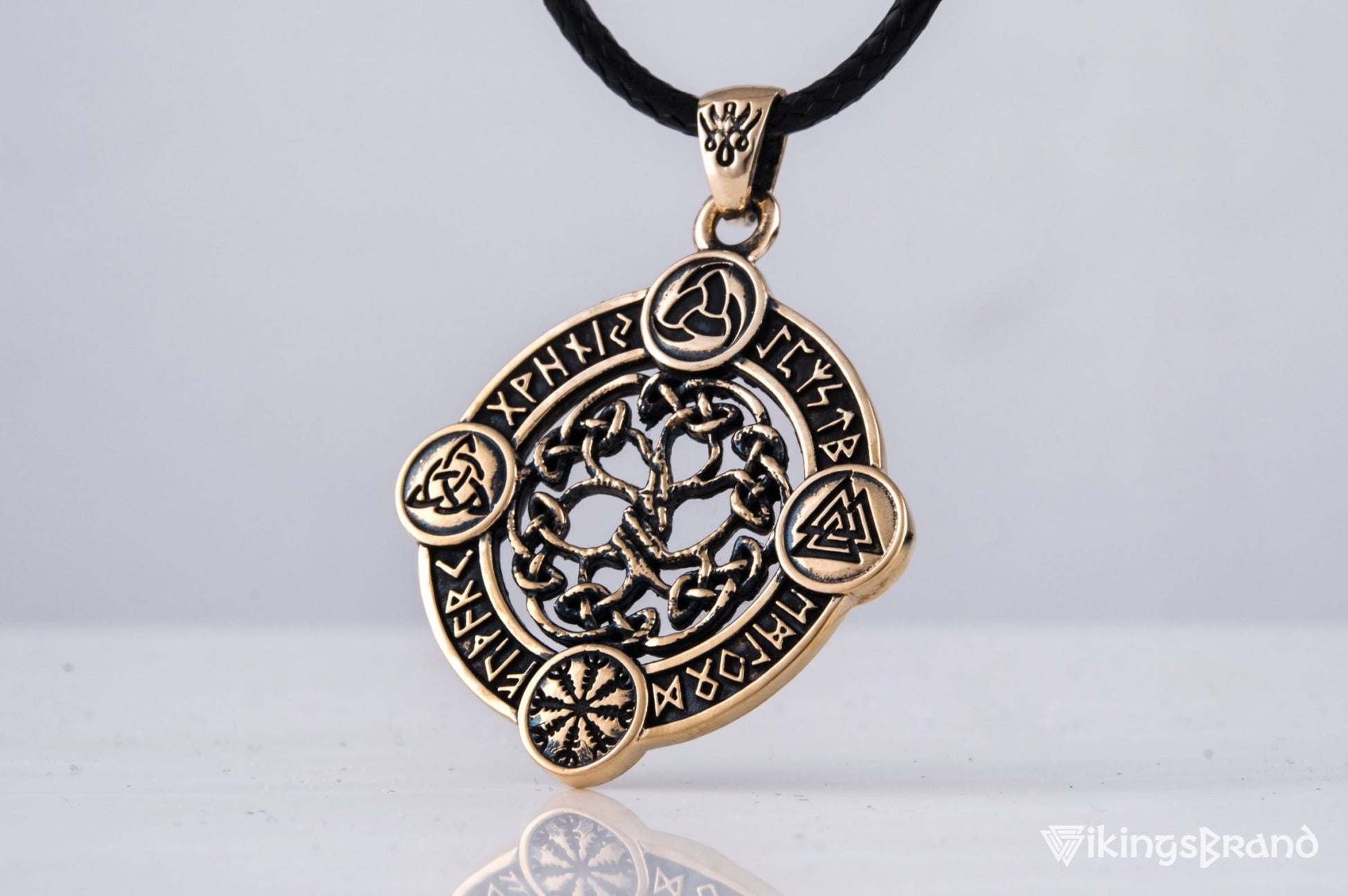 Vikings Yggdrasil The World Tree Pendant with Norse Symbols Bronze Viking Jewelry