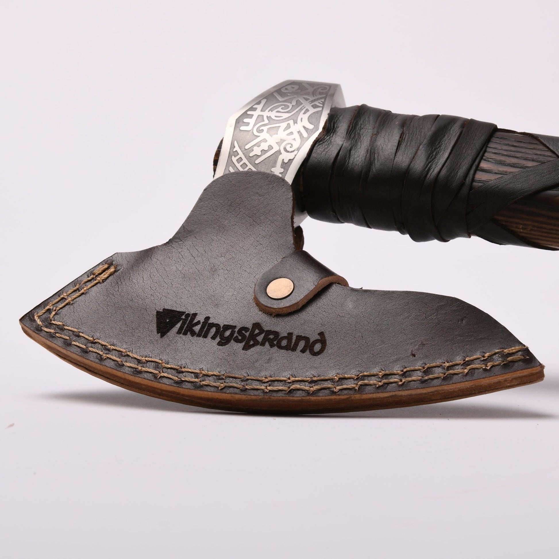 The axe comes with a sheath made from genuine leather. It's designed to protect the blade from dings and dents during transport or while the axe is on display. It also helps prevent any untoward incident by keeping the blade from being exposed when not in use. The thick leather has a premium look and feel to it. It’s durable and won't easily be sliced by the blade.