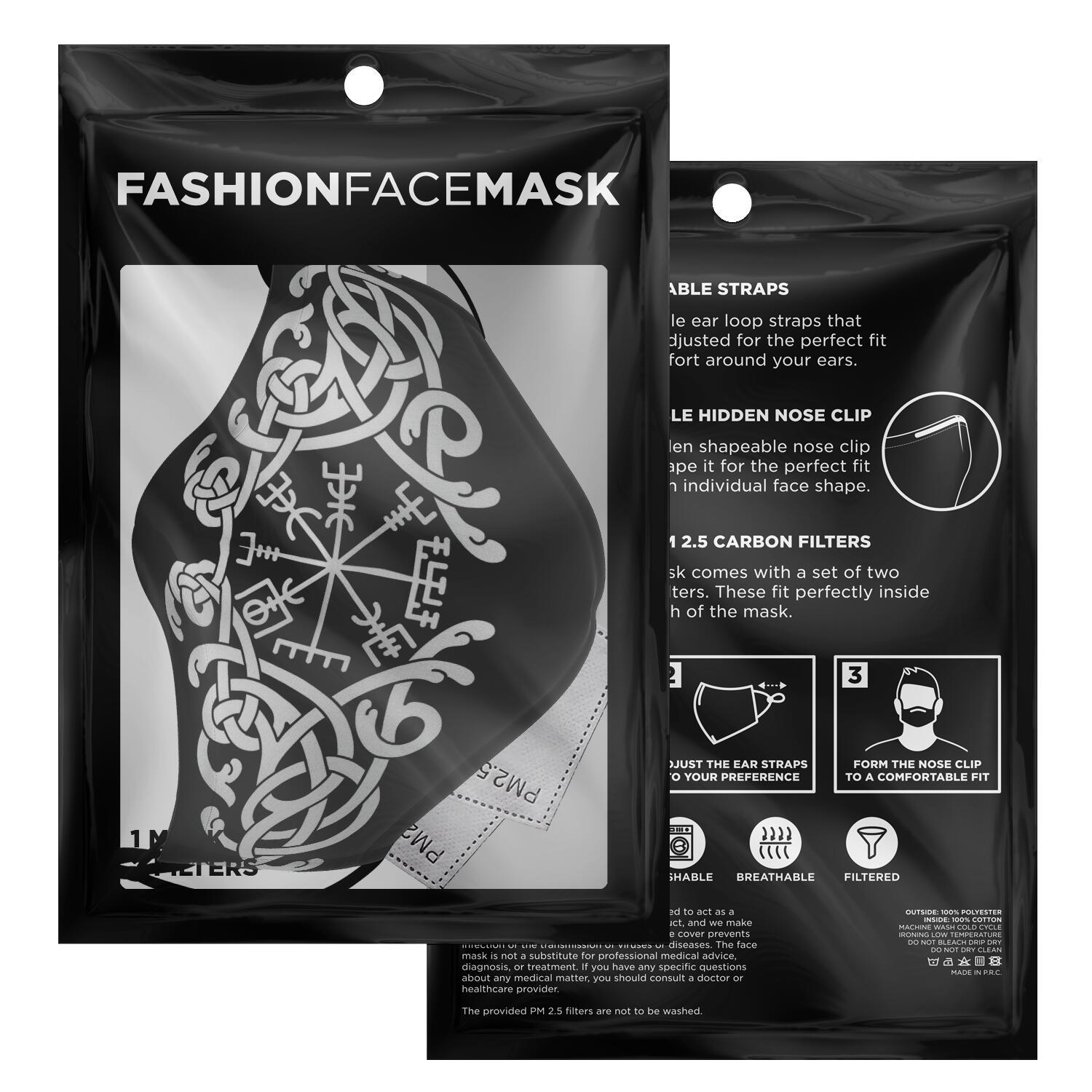 Look fashionable with this custom printed face mask. It comes with easily adjustable ear loop straps to fit all face shapes, as well as a shapeable hidden nose clip for that perfect fit. The outer surface is printed on a premium breathable polyester fabric that won't irritate your skin. While the inner surface is made from a soft breathable cotton fabric. On the inside of the face mask you can find a pouch where you can add any of your own filters. Each face mask also comes with 2 pieces of PM 2.5 filters that can be placed inside the pouch.