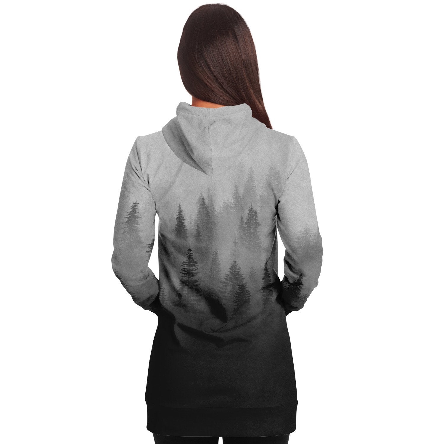 This longline hoodie is made from a soft cotton and polyester faced fabric with a nice brushed fleece on the inside. Fitted with a feminine shaped silhouette for ultimate comfort. Each panel is individually printed, cut and sewn to ensure a flawless graphic with no imperfections.
