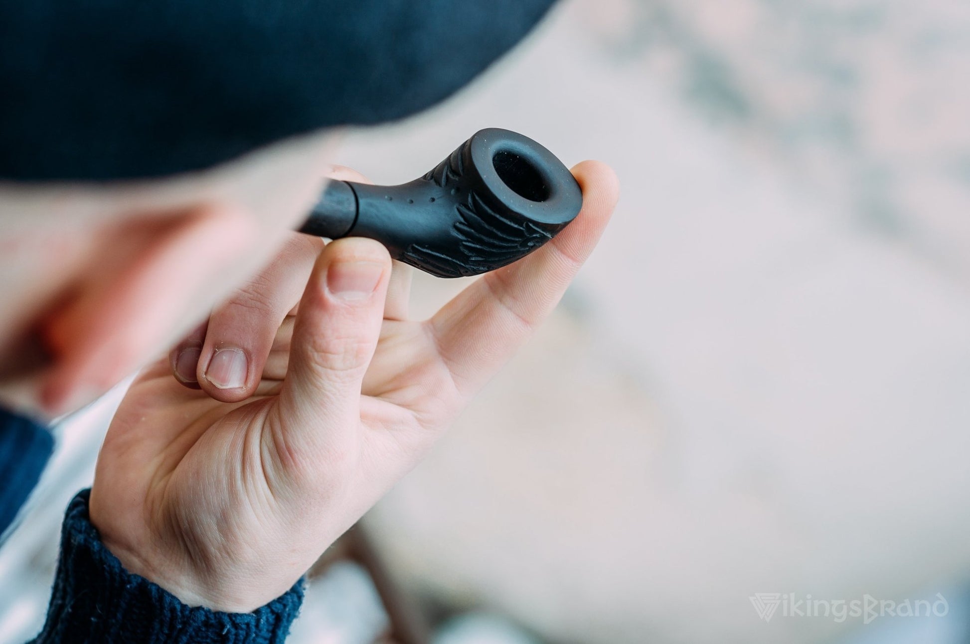 We made this pipe by hand and carved figures of Hugin and Munin, Odin's faithful companions. As such, our pipes enliven the spirit of Norse culture, giving you an incredible feeling as you draw tobacco smoke from them.