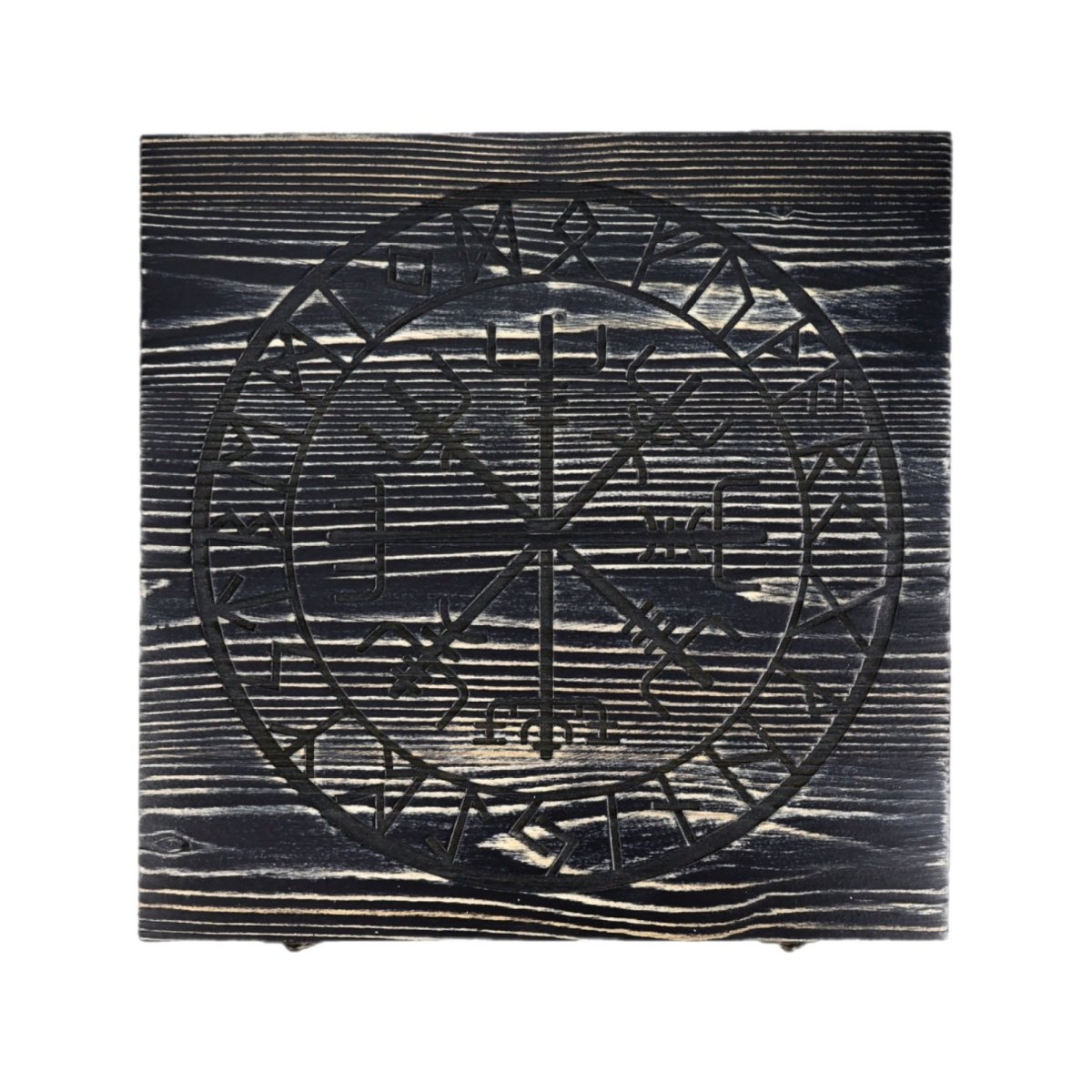The lid bears the Vegvísir, the Viking compass believed to guide its bearer through storms and uncertainty. This ancient symbol adds depth, history, and meaning to your display.