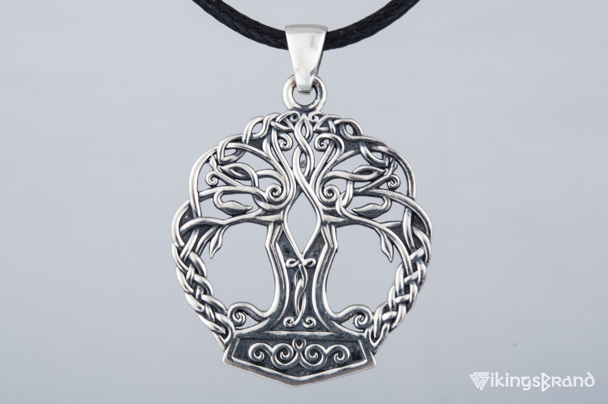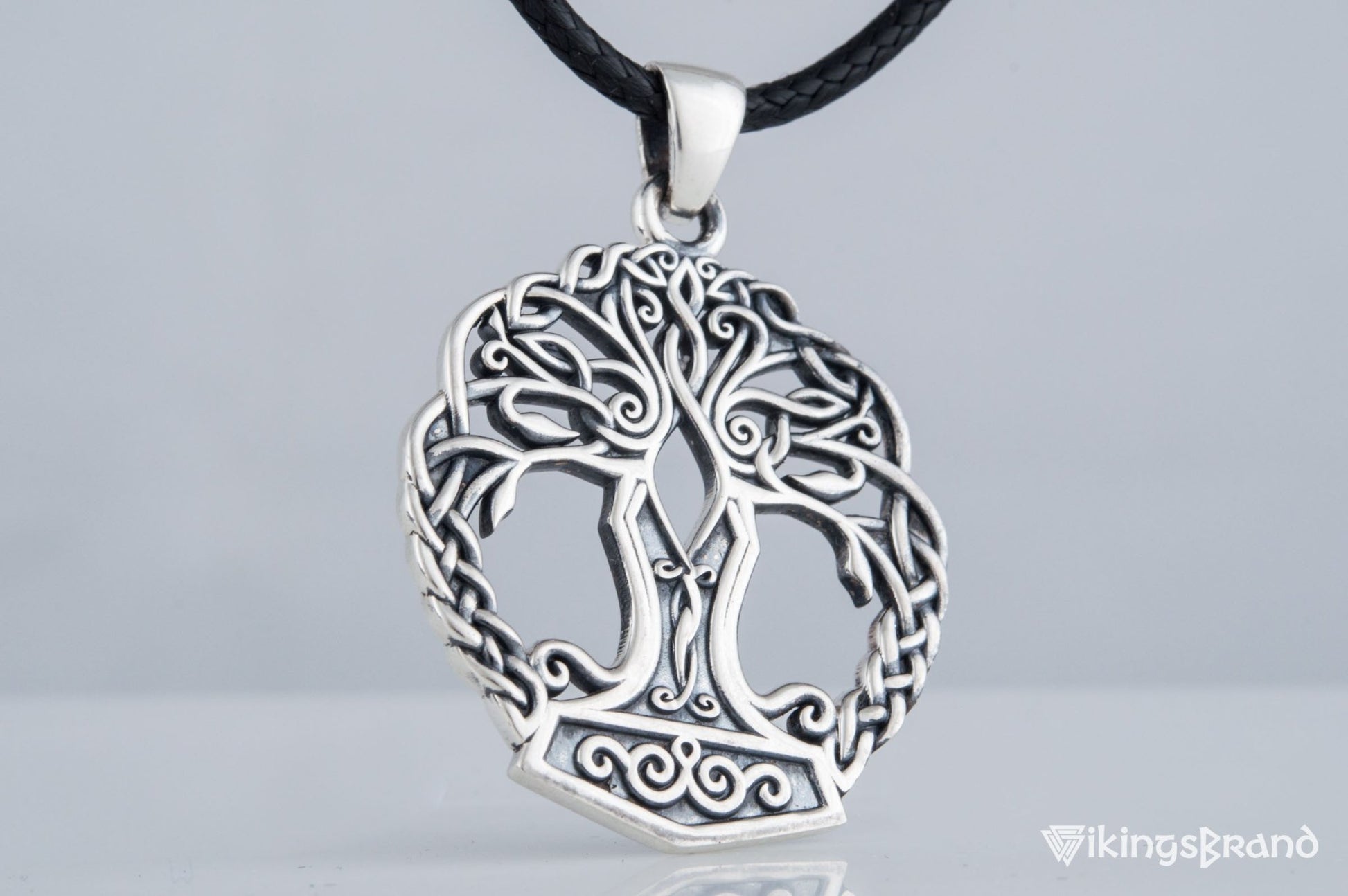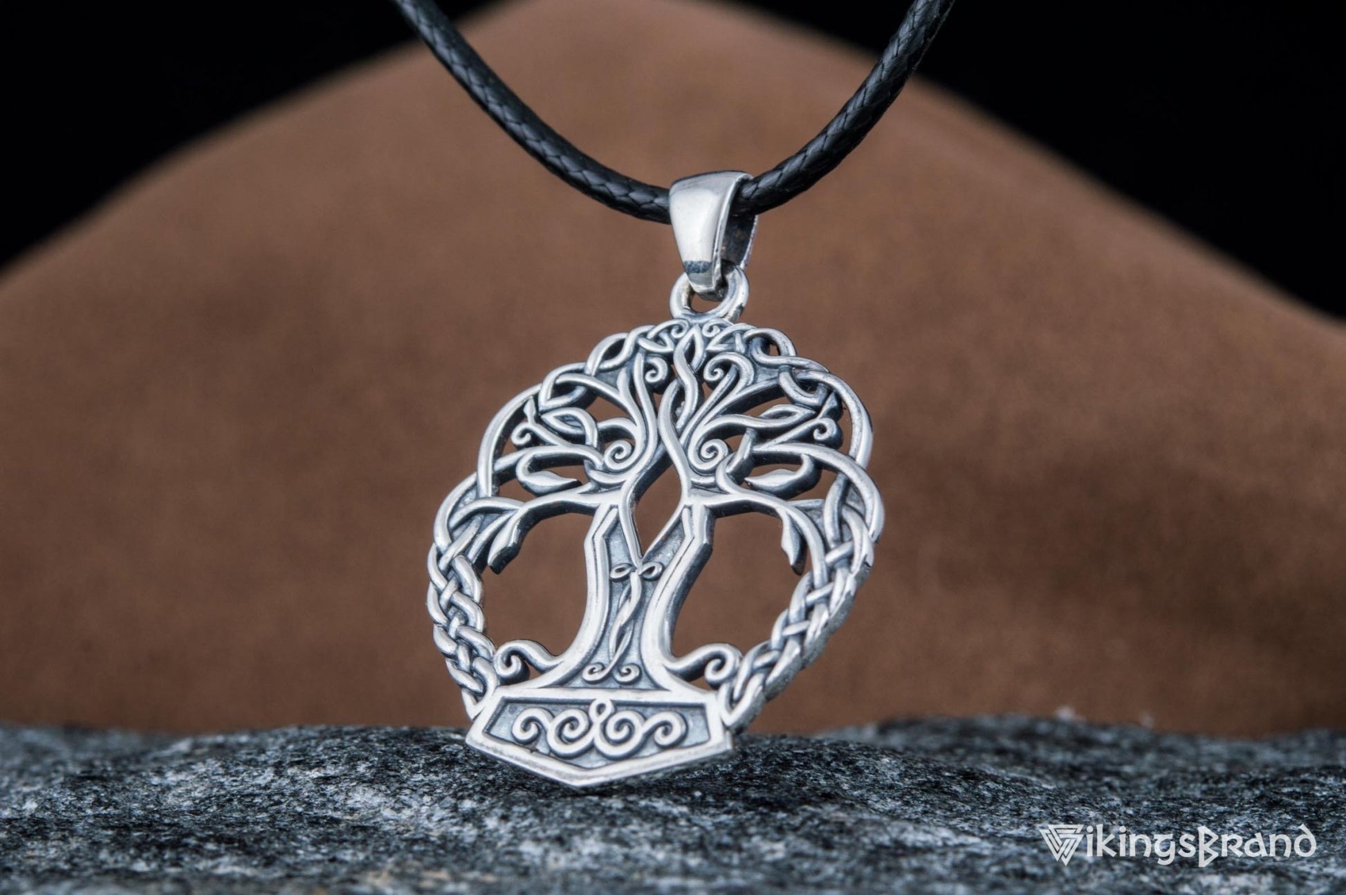 Yggdrasil with Mjolnir Vikings Pendant Handmade Sterling Silver Viking Necklace